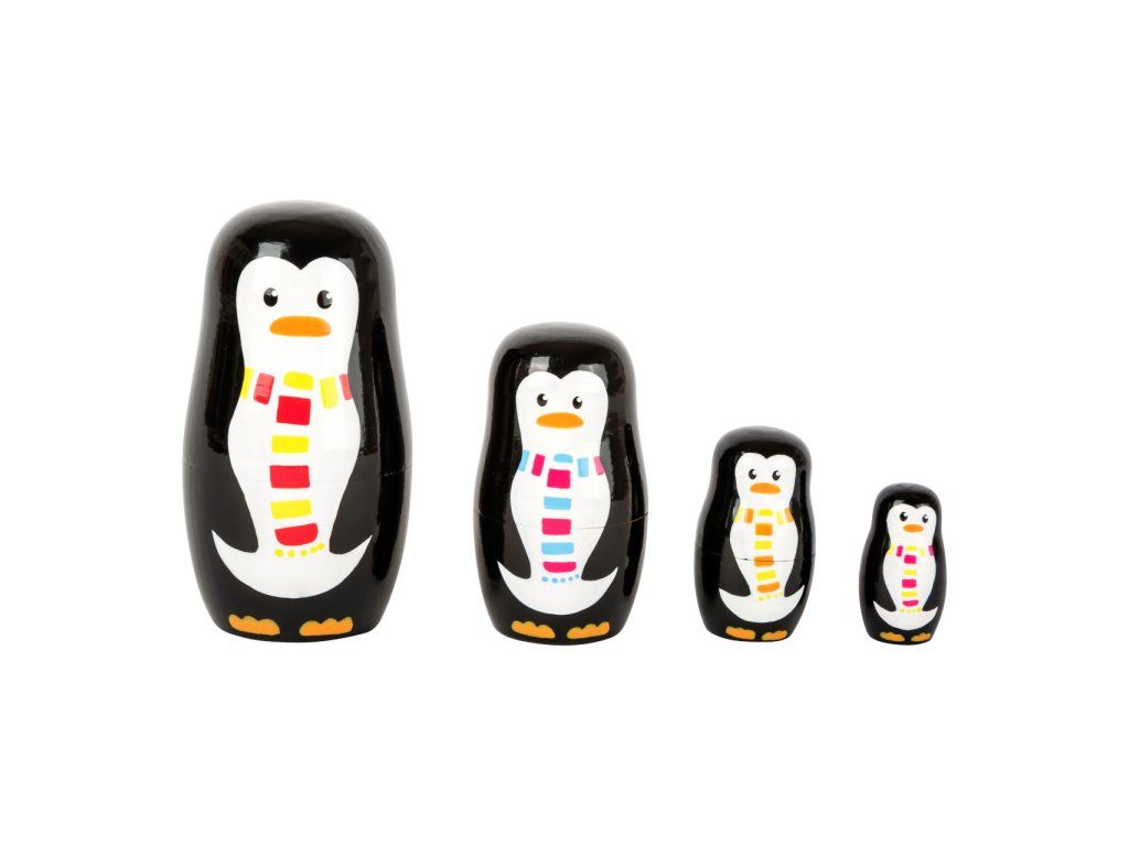 Čtyři láskyplně malované figurky Matrjoška v podobě tučňákovy rodiny. Menší tučňáci se podle velikosti postupně schovávají do sebe. Tyto panenky se snadno uprostřed otevírají, což je skvělá praxe pro koordinaci ruka-oko a jemné motorické dovednosti. Figurky Matrjošky vyzařují své jedinečné kouzlo a jsou roztomilé na pohled - lákavý poutač s velkým studijním potenciálem pro Váš dětský pokoj! Hlavní vlastnosti: 4 figurky tučňákovy rodinkyrozvíjí koordinaci ruka-oko a jemné motorické dovenostiDoplňkové parametry