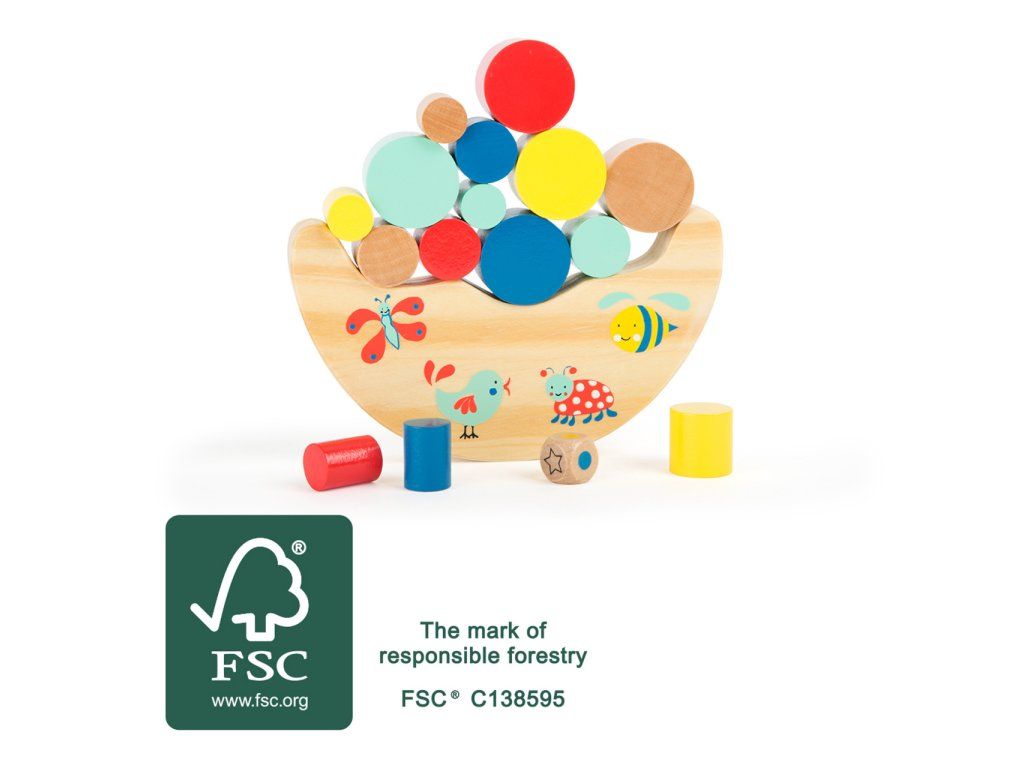 Komu se podaří naskládat tu nejvyšší věž? Velkou výzvou, ve které musí být všechny herní kousky vyrobené ze 100% certifikovaného dřeva FSC® umístěny na vratké houpačce. Obrázek ukazuje, který kus je umístěn jako první. Hlavní vlastnosti: rozvíjí jemnou motoriku dětí podporuje zvídavost vyrobeno z 100% FSC dřeva Značka a certifikát FSC® (Forest Stewardship Council) zaručuje, že dřevo, ze kterého byl produkt vyroben, nebylo vytěženo nelegálně a pochází z lesů obhospodařovaných šetrným či přírodě blízkým způsobem, ve kterém jsou dodržovány přísné environmentální a sociální požadavky. Značka FSC® na výrobku znamená, že svým nákupem pomáháte chránit lesy a podporujete šetrné, odpovědné či přírodě blízké hospodaření, díky kterému jsou naše lesy stabilnější, zdravější, mají přirozenou druhovou skladbu a lépe odolávají negativním následkům klimatických změn.Doplňkové parametry