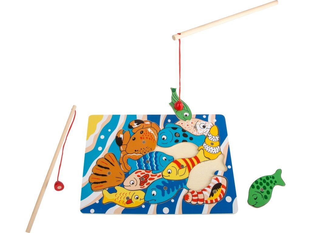 Tato rybářská hra je také skvělým rébusem! Po vylovení všech mořských živočichů z dřevěného rámu můžete pestrobarevné ryby, škeble a kraby opět uložit na jejich pozici. Skvělá kombinace puzzle a rybářské hry! Hlavní vlastnosti: obsahuje 13 mořských živočichů, rám a dvě udicetrénuje jemnou motoriku a paměťDoplňkové parametry