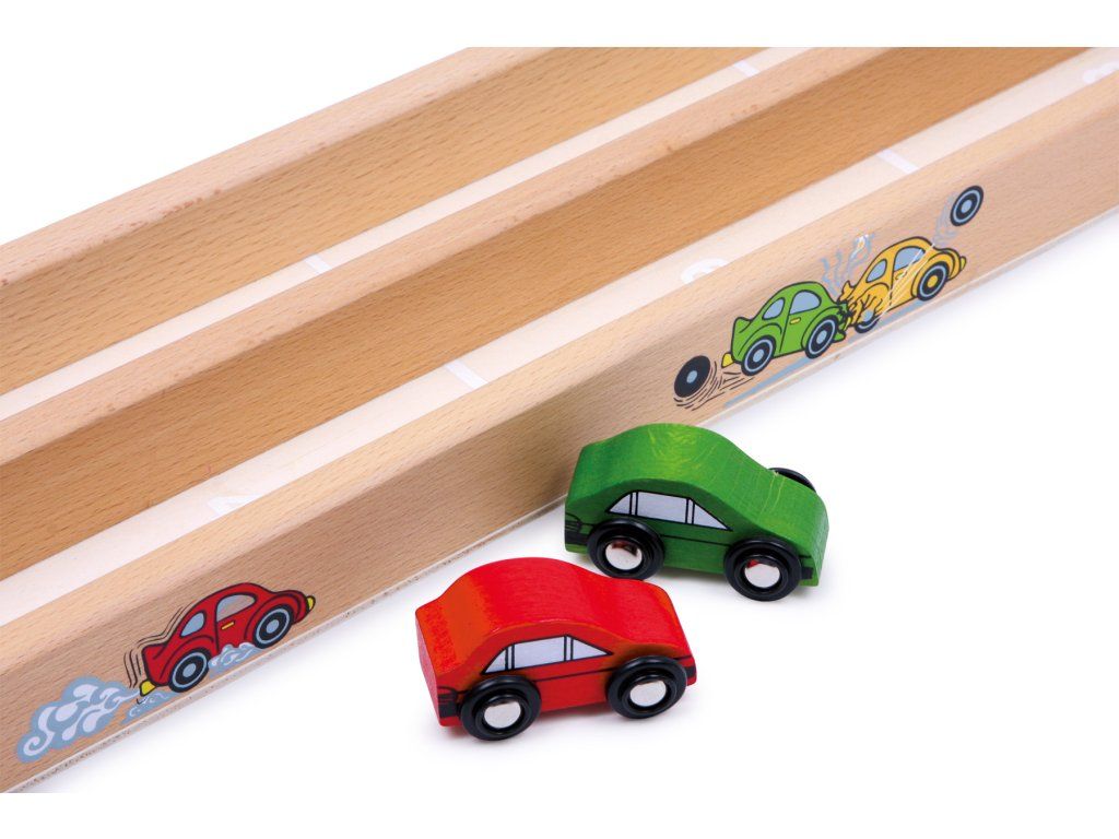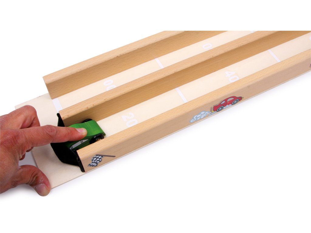 Dlouhá závodní rampa je vybavena odpalováním z gumy. Stačí natáhnout a auto se rozjede a Vy už jen sledujte, kterému autíčku se podařilo vyvinout vyšší rychlost. Po stranách zdobeno barevnými ilustracemi. Hlavní vlastnosti: rampa se dvěma dráhami2 autíčka součástí baleníDoplňkové parametry