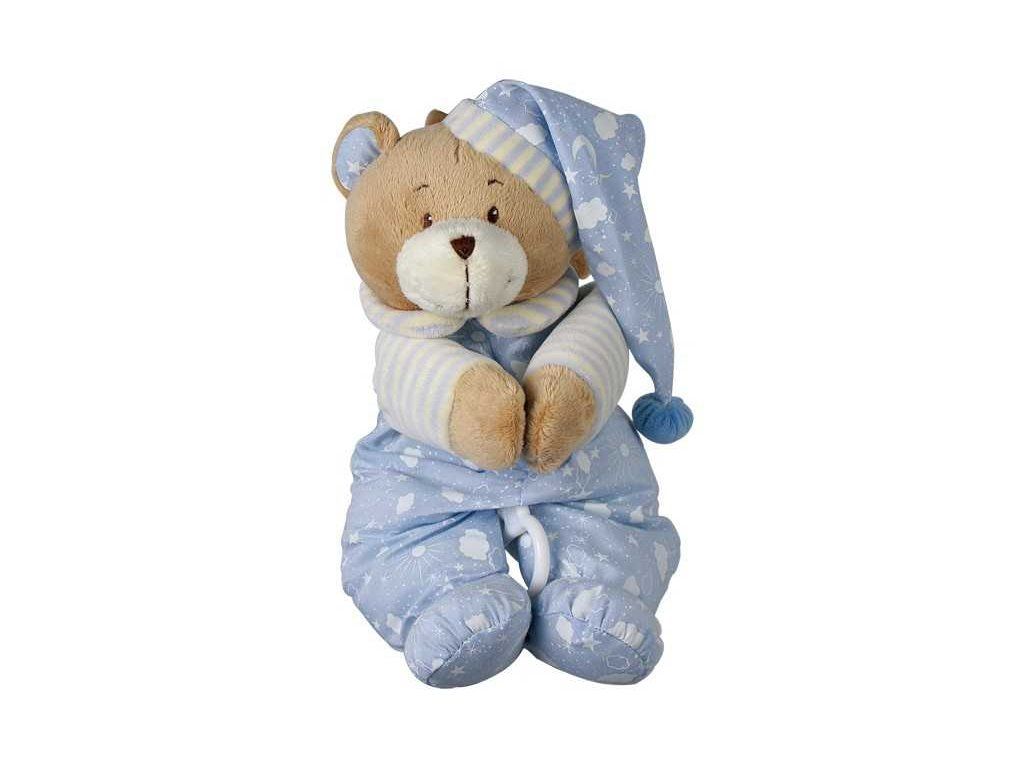 Už žádné noční můry! Medvídek v modrém pyžamku přeje sladké sny! Tělíčko má z měkkého materiálu a na tváři veliký úsměv. Po hodinách zábavy a hraní Vám pomůže usnout za ukolébavky „Dobrý večer, dobrou noc“. Méďa je ten pravý kamarád, ve štychu Vás nenechá! Pro možnost zavěšení jsou na hlavičce našité 2 měkké pásky. Hlavní vlastnosti: možnost zavěšenírozvíjí představivosthraje ukolébavku „Dobrý večer, dobrou noc“roztomilý společník a skvělý dárek pro naše nejmenšíDoplňkové parametry