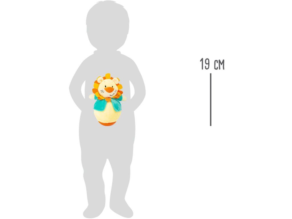 Plyšový lev, kterého si zamilujete. Tento lev má netradiční základnu. Když do něj strčíte, nespadne, ale začne se kývat ze strany na stranu a pak se vrátí do vzpřímené polohy. Děti také potěší rolnička, kterou má skrytou uvnitř. Hračka pro motorickou aktivitu podporuje rozvoj a je výborným společníkem na hrací podložku. Hlavní vlastnosti: příjemný, měkký plyškývá se díky vypouklé základněDoplňkové parametry