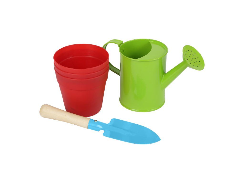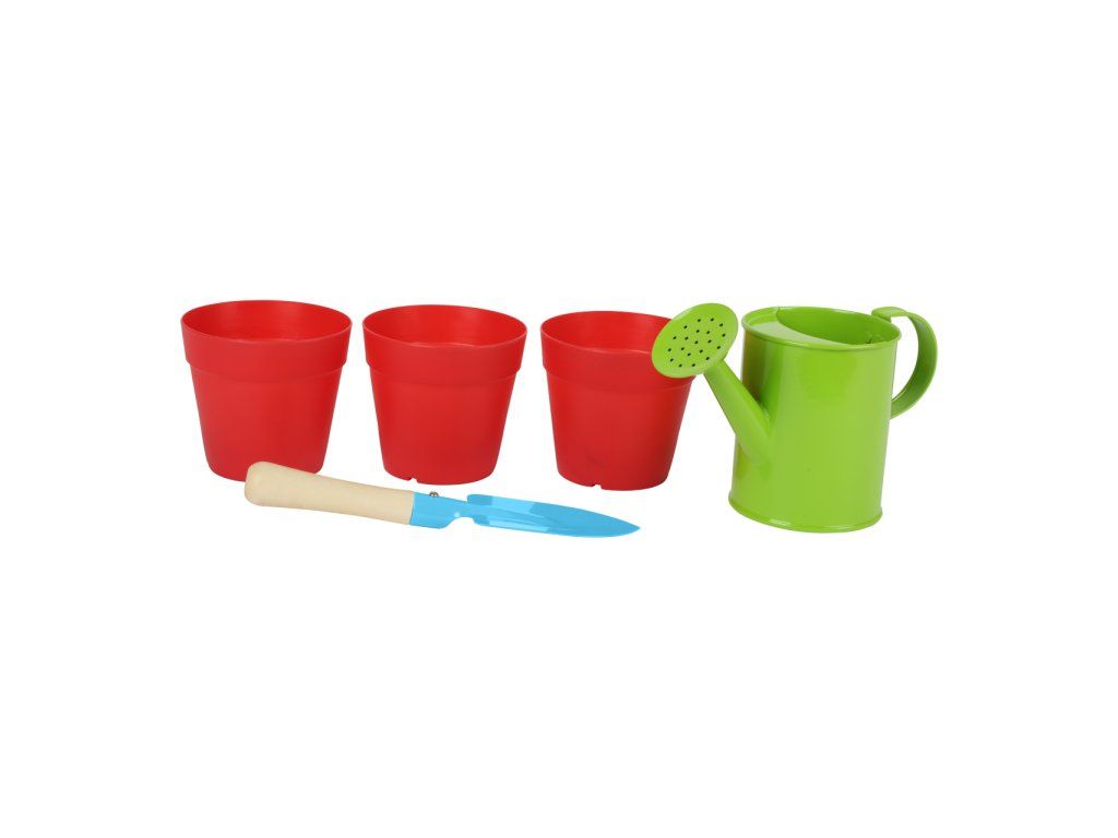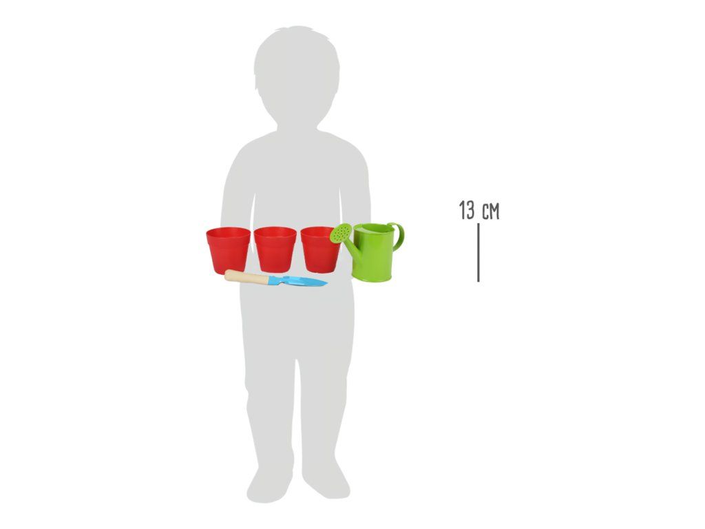 Zahradničte jako dospěláci s touto sadou konvičky, lopatky a znovupoužitelných květináčů. Jednoduše naplňte květináče hlínou, zasaďte semínka a počkejte, co se bude dít. Mladí zahrádkáři se naučí jak pracovat s přírodou a jak si jí vážit. Lopatka je vyrobena z masivního dřeva a kovu a pro děti je lehce uchopitelná. Květináče mají zespodu díry pro odtékání přebytečné vody. Jaké rostliny zasadíte? Hlavní vlastnosti: ideální velikost pro dětirozvíjí motoriku a vztah k příroděvyrobeno z kovu, dřevěná násadabalení obsahuje: 3 květináče, 1 konvička, 1 lopatkaDoplňkové parametry