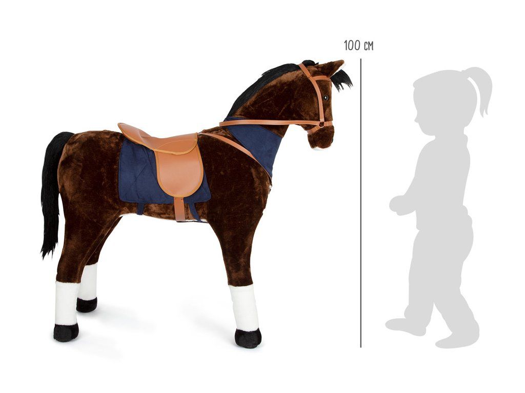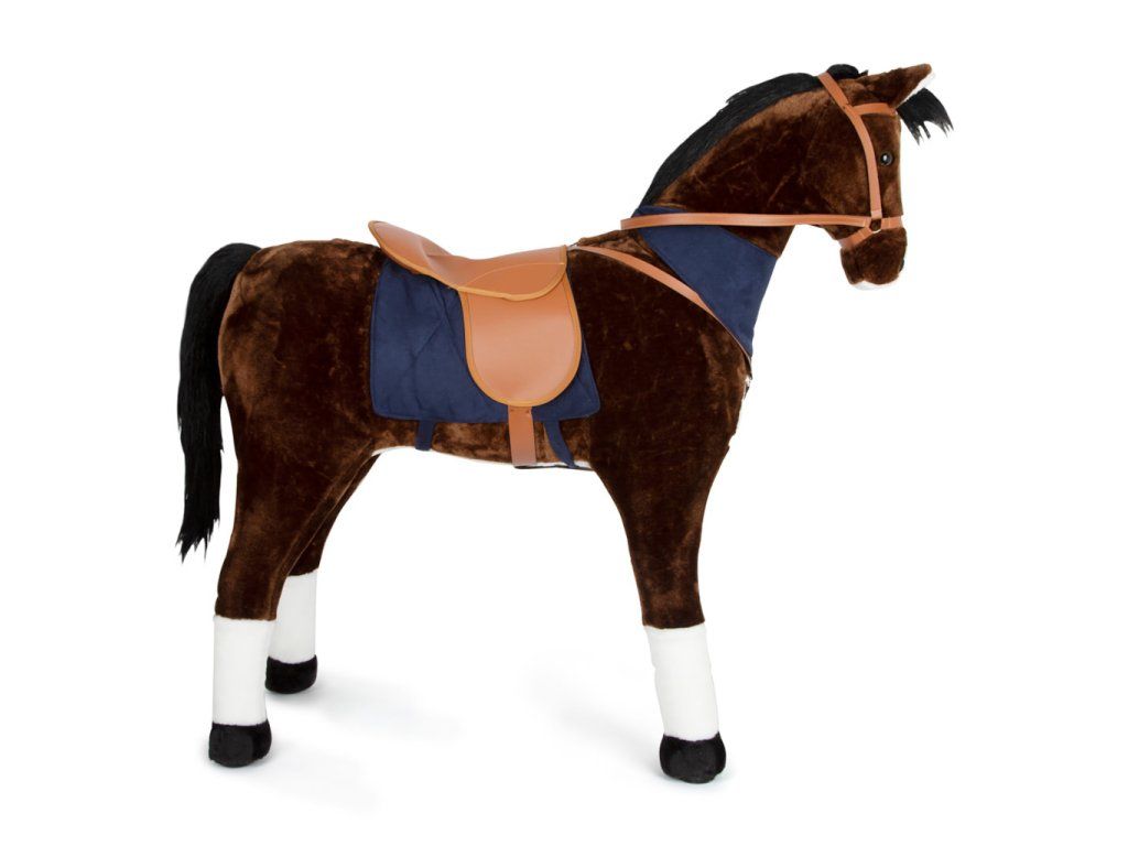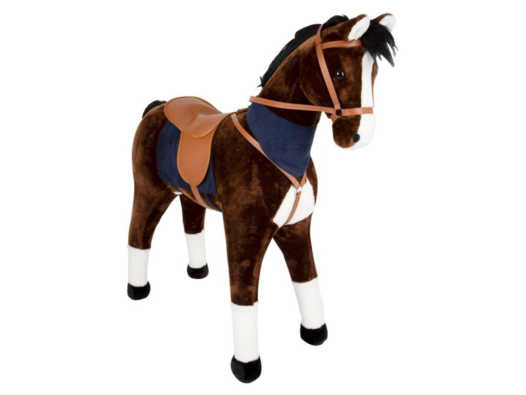 Koník jako z pohádky! Skvělý společník do dětského pokoje, který roztomilým šátkem okouzlí každého, nejen kovboje. Měkce vypodložené sedlo je odnímatelné, a lze tak trénovat i strojení zvířete. Po stisknutí jeho ucha se ozve hlasité zaržání a klapot kopyt (baterie nejsou součástí balení). Hlavní vlastnosti: výška sedu 75 cmnosnost do 80 kgzvukový efekt (baterie nejsou součástí balení)Doplňkové parametry