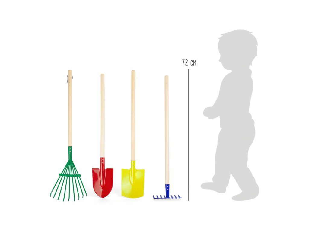 Zima je u konce! Je nejvyšší čas, aby se záhony připravily na jaro - nebo možná vytvoříte i několik nových? Pevná sada zahradního nářadí obsahuje dvoje hrábě, lopatu a rýč. Ve svých jasných barvách je vhodná pro jakýkoliv úkol na zahradě. Živé barvy a realistický design usnadňují mladým zahradníkům napodobovat dospělé a učit se od nich. Po dokončení práce mohou být nástroje řádně zavěšeny za provazové konce. Toto zahradnické nářadí potřebuje už jen květiny a půdu! Hlavní vlastnosti: Ideální velikost pro dětiRozvíjí motoriku a vztah k příroděVyrobeno z kovu, dřevěná násadaDoplňkové parametry