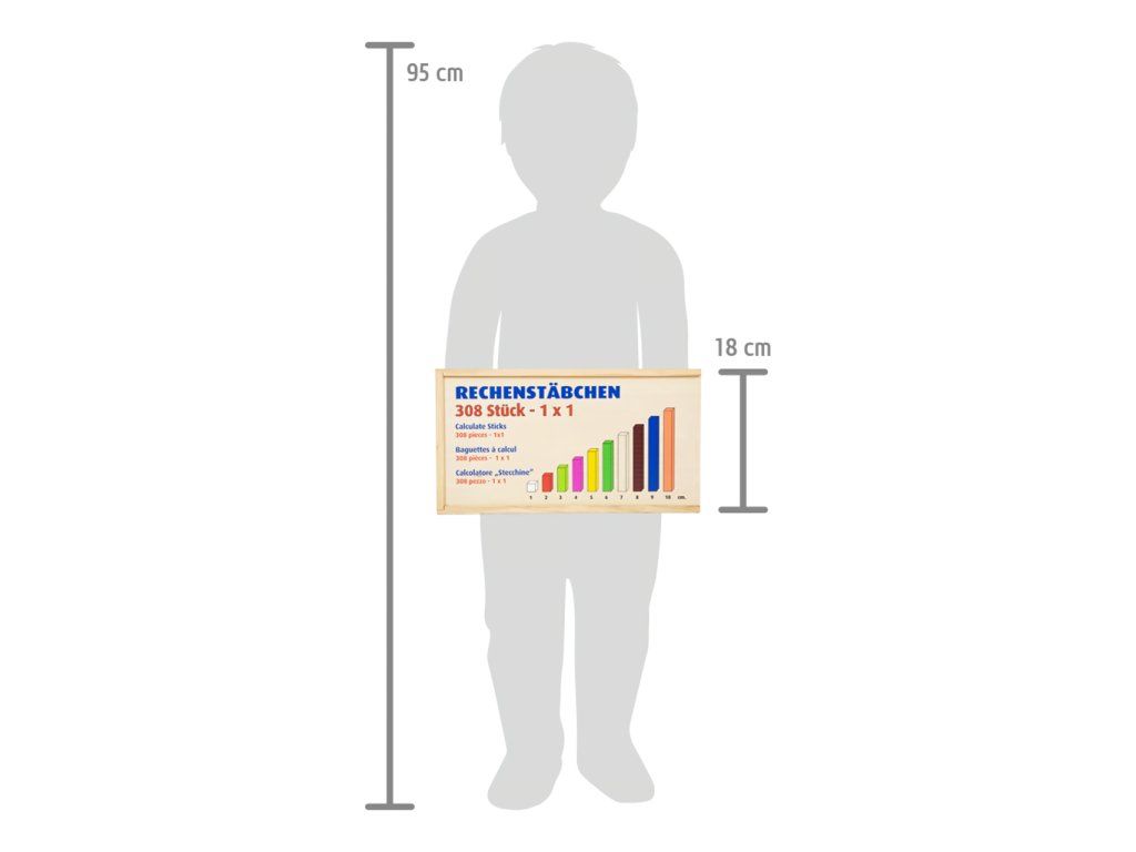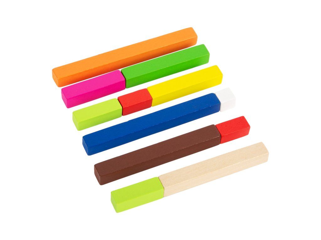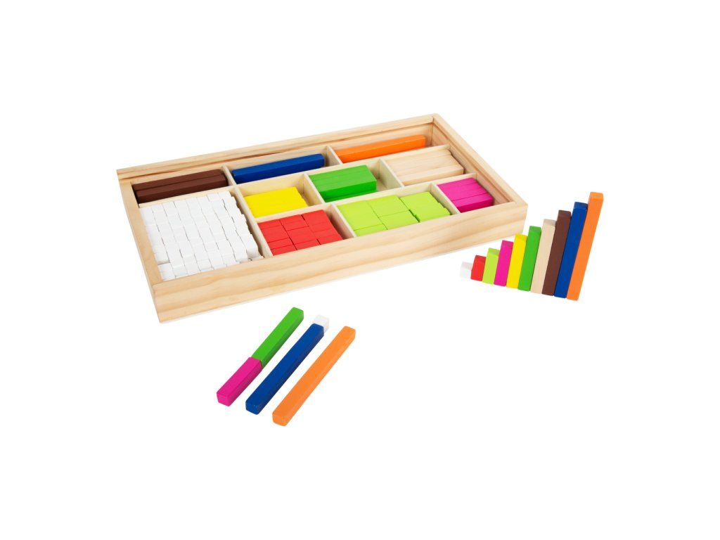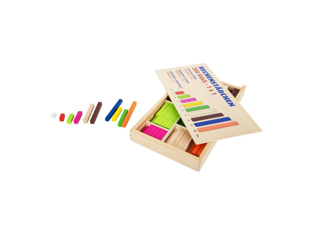Je deset větší než tři? Tyto všestranné matematické tyčinky přispěji dětem k prvotnímu porozumění číslům a rychle a názorně je podpoří při prvních pokusech o matematické rovnice. Barevné tyčinky v různých délkách slouží jako orientační pomůcka. Děti předškolního věku získají základní matematické dovednosti při počítání, porovnávání a třídění tyčinek. Sada obsahuje 6 hnědých tyčinek, 6 modrých, 6 oranžových, 10 tmavě zelených, 10 tyčinek v barvě přírodního dřeva, 10 žlutých, 36 červených, 12 růžových, 36 světle zelených a 176 bílých tyčinek. Tyto tyčinky jsou ideální společníci pro matematické profesionály všech věkových kategorií. Trénují představivost a logické myšlení a zároveň předávají pochopení velikostí a barev. Všechny tyčinky lze po ukončení učení roztřídit a uložit do přiložené dřevěné krabice s posuvným víkem. Hlavní vlastnosti: 308 ks víceúčelových matematických tyčinek jako ideální úvod do světa číselpočítání, porovnávání a třídění přináší dítěti první základní matematické dovednostibaleno v dřevěné krabici s posuvným víkemDoplňkové parametry