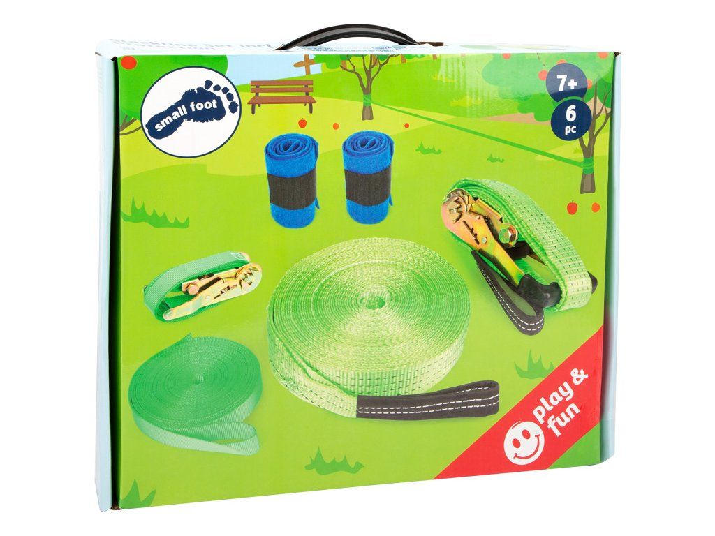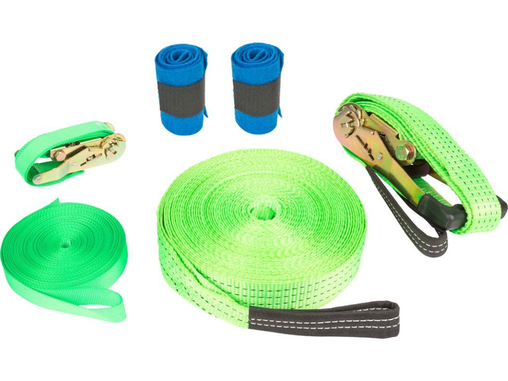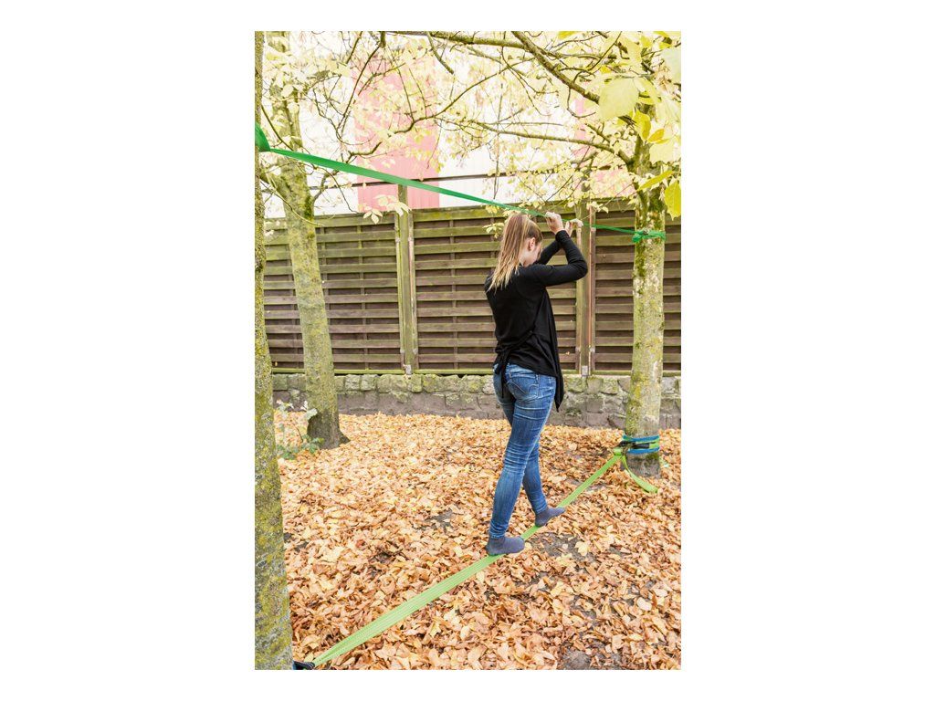 Slackline sada - včetně ochrany stromu. Slackline je moderní trendový sport, který uspokojí rodinku prahnoucí po odpolední zábavě, i odvážného dobrodruha, který potřebuje rozproudit adrenalin. Tento sport trénuje tělesné napětí a rovnováhu. Ono se to totiž nezdá, ale takové balancování na pružném popruhu není vůbec jednoduché. Je potřeba zapojit každý sval v těle, a přitom můžete stát jen pár centimetrů nad zemí. Začátečníci si mohou instalovat vodicí lano, kterého se mohou držet při prvních krůčcích. Napínací račny slouží k nastavení napětí popruhu. Slackline lze s minimální námahou instalovat mezi dva stromy na dvoře nebo v parku. Plstěné proužky jsou určeny k ochraně stromů. Tato venkovní hračka je opravdovým nezbytností pro zahradu. Hlavní vlastnosti: procvičuje rovnováhu a posílit koordinaciplstěné proužky slouží jako ochrana stromůnapínací račny k nastavení napětíDoplňkové parametry