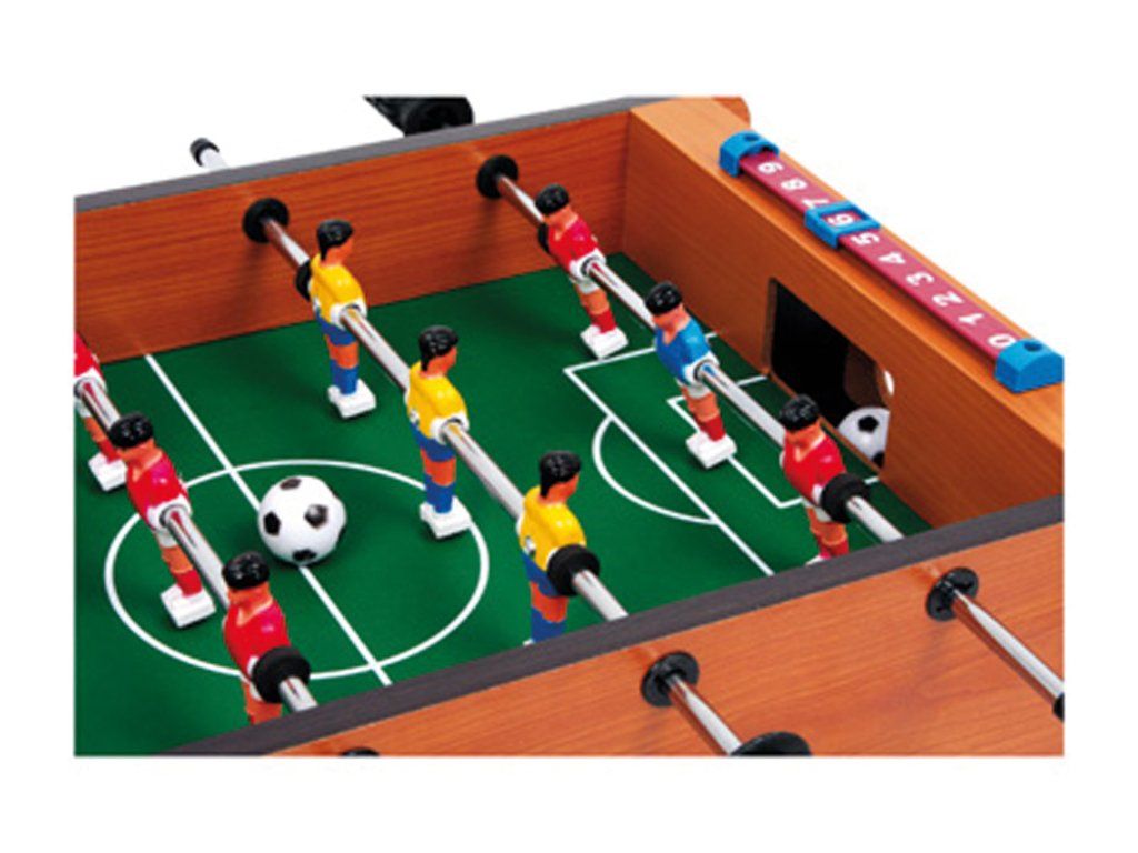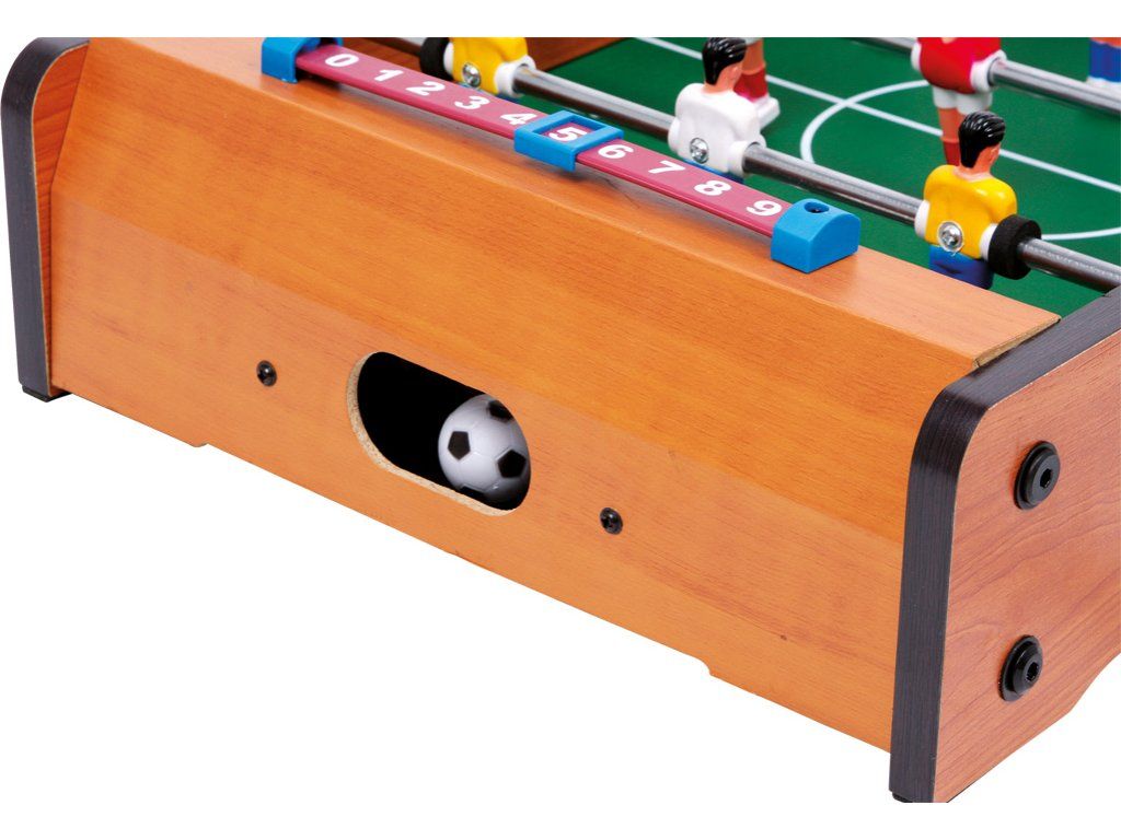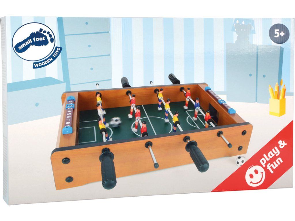 Tento malý stolní fotbal je zábavná hra. Každý tým má 6 hráčů. Na své si přijdou malí i velcí fotbaloví fanoušci. Rychlá hra trénuje koordinaci ruka-oko a přináší spoustu zábavy - takový je stolní fotbal. V balení najdete 2 ks míčků. Hračka je vyrobena z lakovaného dřeva. Fotbálek je vybaven počítadly gólů. Hlavní vlastnosti: trénuje koordinaci ruka-okovčetně 2 míčkůpočítadlo gólůDoplňkové parametry