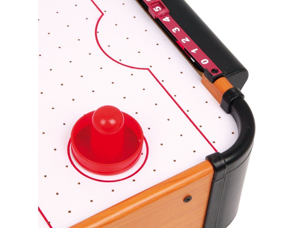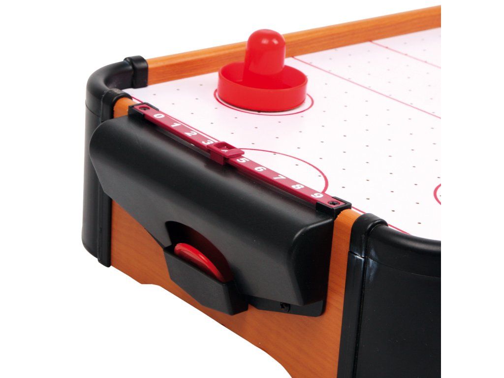 Tento vzdušný hokej je rychlá hra, kterou můžete hrát na malé ploše. Větrák je napájen osmi AA bateriemi, které puk zvednou a ten díky tomu může lítat po herní zóně rychle jako blesk. Tato hra perfektně trénuje motoriku a koordinaci ruka-oko. Stolní Air Hockey můžete postavit kamkoliv a po dohrání jej jednoduše vrátíte zpět do skříně, abyste ušetřili místo. Hlavní vlastnosti: skvělá hra pro soutěživé dvojicetrénuje motoriku a koordinaci ruka-okokompaktní rozměryDoplňkové parametry