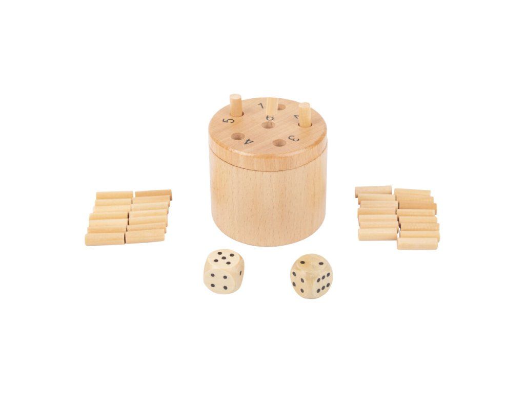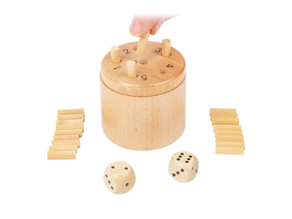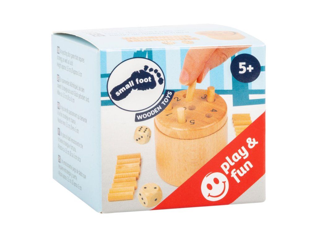 Vzrušující hra s kostkami, která vyžaduje strategii i štěstí! Tato klasická dřevěná hra je vhodná pro dva až šest hráčů a lze ji hrát ve dvou variantách. Cílem je zbavit se všech vašich tyčinek jejich umístěním do správných otvorů, podle toho, jaké číslo padne na kostce. A tady je něco obzvláště praktického: přidáním druhé kostky lze tuto společenskou hru rozšířit na druhou variantu, která vyžaduje strategické myšlení v každém herním kole. Po dokončení hry lze herní plochu jednoduše použít jako úložný box. Kdo má největší štěstí při hodu kostkou? Hlavní vlastnosti: vhodné pro 2 až 6 hráčůmožné hrát ve dvou variantách přidáním druhé kostkypraktické balení - dřevěný boxprocvičuje strategické myšleníDoplňkové parametry