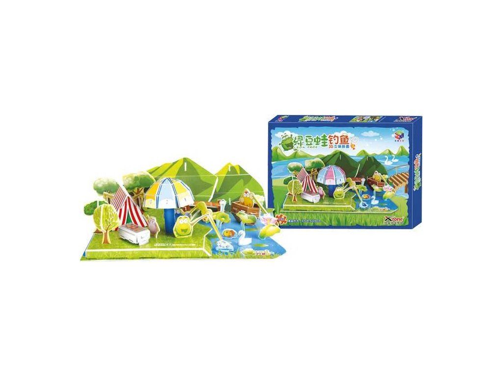 „Leon Frog“ a jeho přátelé žijí osobitý život mezi horami. Tůňka s lodičkou, grill, stan a slunečník jsou částmi scény, kterou postavíte z kvalitního laminovaného papíru s pěnovým jádrem. Bude to vyžadovat šikovné ruce a velkou koncentraci. Pěnové 3D puzzle není nutno lepit lepidlem, lze je kdykoliv rozložit a znovu složit. Hlavní vlastnosti: obsahuje 56 dílkůpodporuje jemnou motorikuDoplňkové parametry