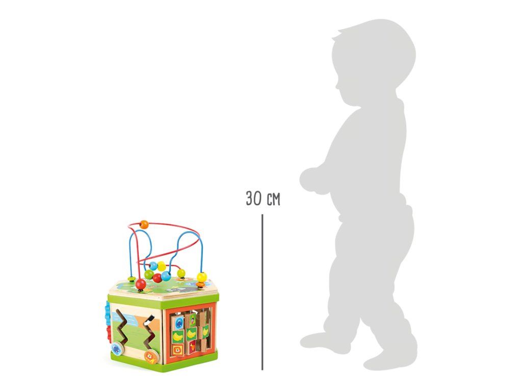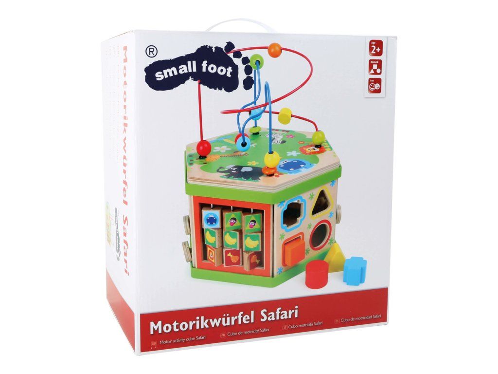 Představujeme Small Foot Velká motorická kostka safari – revoluci v dětské zábavě a vzdělávání! S touto robustní dřevěnou kostkou, ozdobenou roztomilými safari zvířátky, otevíráte dveře do světa plného objevů, kde každá hratelná plocha je novým dobrodružstvím. Představte si, že vaše dítě objevuje radost z učení, zatímco jeho prstíky se snaží ovládnout posuvné pravítko nebo se směje, když skluzavka dopraví zvířátko do cíle. Sedm interaktivních ploch Small Foot Velké motorické kostky safari je navrženo tak, aby podněcovalo zvědavost a touhu poznávat. Od posilování jemné motoriky až po koordinaci oko-ruka, tato kostka je víc než hračka - je to brána k nekonečnému objevování. Není to jen o hře. Small Foot Velká motorická kostka safari je také designový skvost, který se pyšní výrobou v Německu, zaručující kvalitu a bezpečnost, které si váš malý průzkumník zaslouží. Vnitřní úložný prostor kostky slouží jako tajná komora pro zásuvné prvky, udržuje pořádek a zároveň podněcuje dětskou fantazii. A s potiskem atraktivních zvířecích ilustrací se stane i okouzlujícím doplňkem každé dětského pokoje. Přidejte do života vašeho dítěte rozměr kreativity a učení, který bude posilovat jeho dovednosti každý den. Hlavní vlastnosti: veselý barevný safari designmultifunkční aktivity motorická kostka na 7 hratelných plocháchrozvíjí jemnou motoriku, koordinaci oko-ruka a soustředěníinteriér nabízí úložný prostor pro zásuvné prvkyvhodné od 12 měsícůDoplňkové parametry