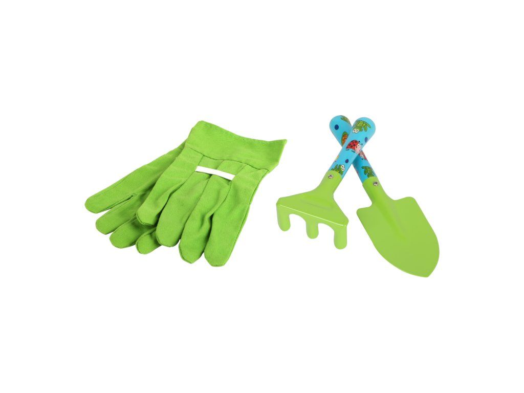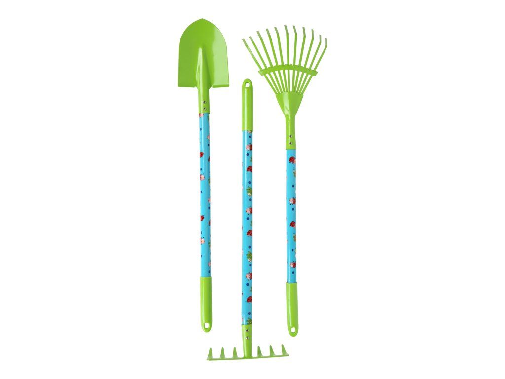 Hurá na zahradu! Mladí zahradkáři Vám rádi pomohou s touto velkou sadou zahradního nářadí. Stačí si nasadit rukavice a mohou začít motykou, hráběmi, rýčem, kolečkem a dalšími nástroji pomáhat a rozvíjet své zahradnické zkušenosti. Všechny díly jsou vyrobeny z vysoce kvalitního, jemně opracovaného kovu a díky svému dětskému designu a jarním barvám potěší každého malého zahrádkáře. Hlavní vlastnosti: součástí balení je vše dle obrázkuideální velikost pro dětirozvíjí motoriku, rovnováhu a vztah k příroděvyrobeno z kvalitních materiálů kovu a dřevakolečko má plastové kolo s pevnou bezvzduchovou gumovou pneumatikouDoplňkové parametry