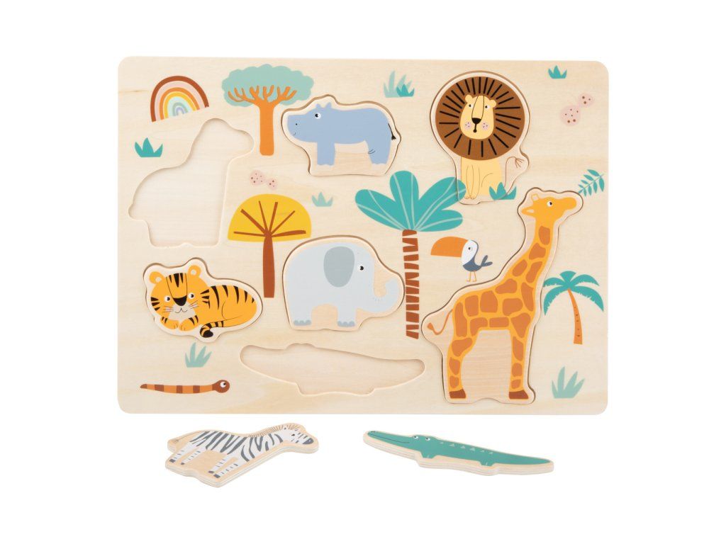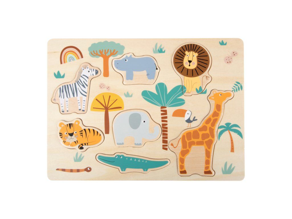 Vítejte na safari! Toto dřevěné puzzle ma za cíl vrátit zvířátka savany zpět na jejich místo. Nejen, že trénuje motoriku dětí, zároveň jim pomůže s rozeznáváním tvarů a bude od nich vyžadovat soustředěnost a trpělivost. Puzzle nadchne rodiče i děti svými veselými motivy safari a trendy barvami. Hlavní vlastnosti: ilustrováno, pastelové barvyzákladová deska a 7 dílůDoplňkové parametry