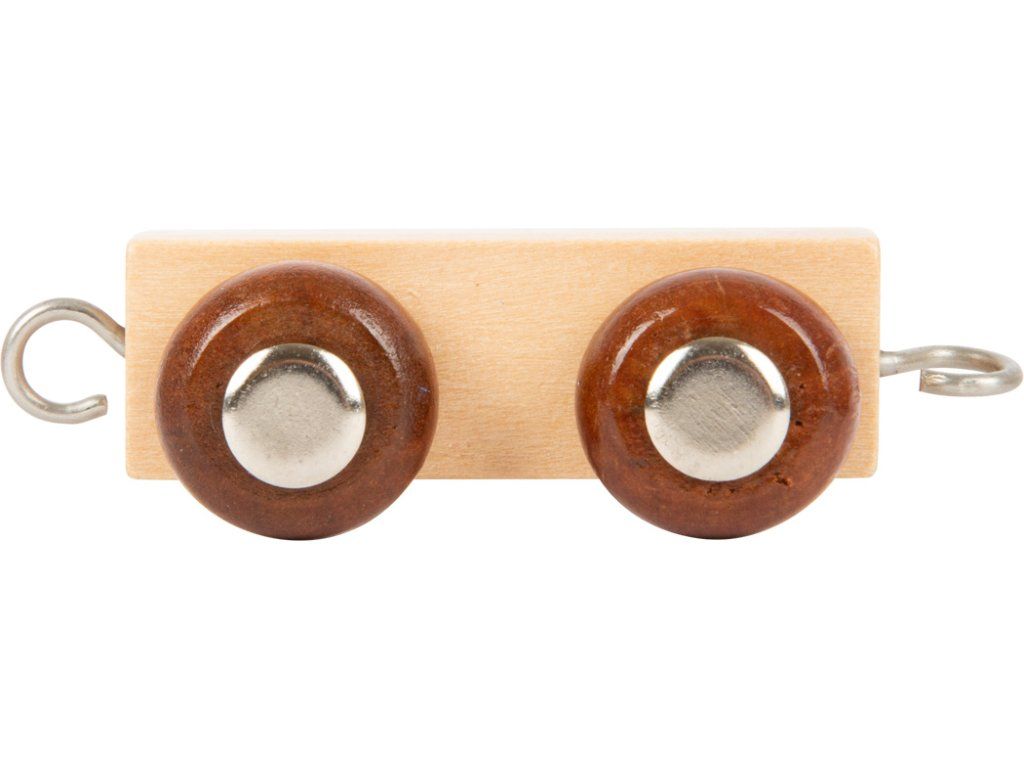 Vagónek je vhodný k vláčkodráhám jiných výrobců a lze jej například využít jako mezičlánek písmenkového vlaku. Osy koleček jsou dřevěné nebo kovové, dodáváme náhodně podle aktuální dostupnosti. Hlavní vlastnosti: kompatibilní s dřevěnými vláčkodráhami jiných výrobcůpodporuje představivost, obratnost a koordinaciDoplňkové parametry