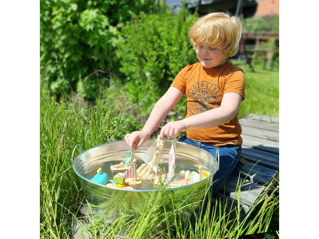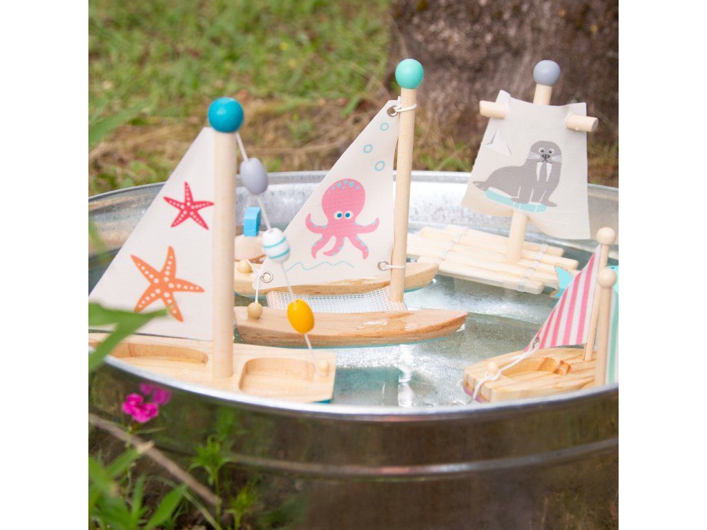 Cena je uvedena za 3 ks. Všechny kapitány prosím o pozornost! Tyto tři dřevěné plachetnice potěší každého, kdo má rád vodu. Děti si s nimi mohou hrát ve vaně, na bazéně i u moře. Plachetnice jsou prostorné, takže do nich mohou postavit vlastní figurky. Plachty lze v případě potřeby spustit a poté znovu svázat. Vodní hračky vyrobené ze dřeva jsou ekologičtější alternativou plastových a gumových hraček. Pro delší životnost hračky ji po vytažení z vody pořádně osušte. Hlavní vlastnosti: využití ve vaně, na bazéně nebo u mořehra podporuje fantaziipři plavbě v přírodě je poháněna větremprocvičuje jemnou motorikuDoplňkové parametry