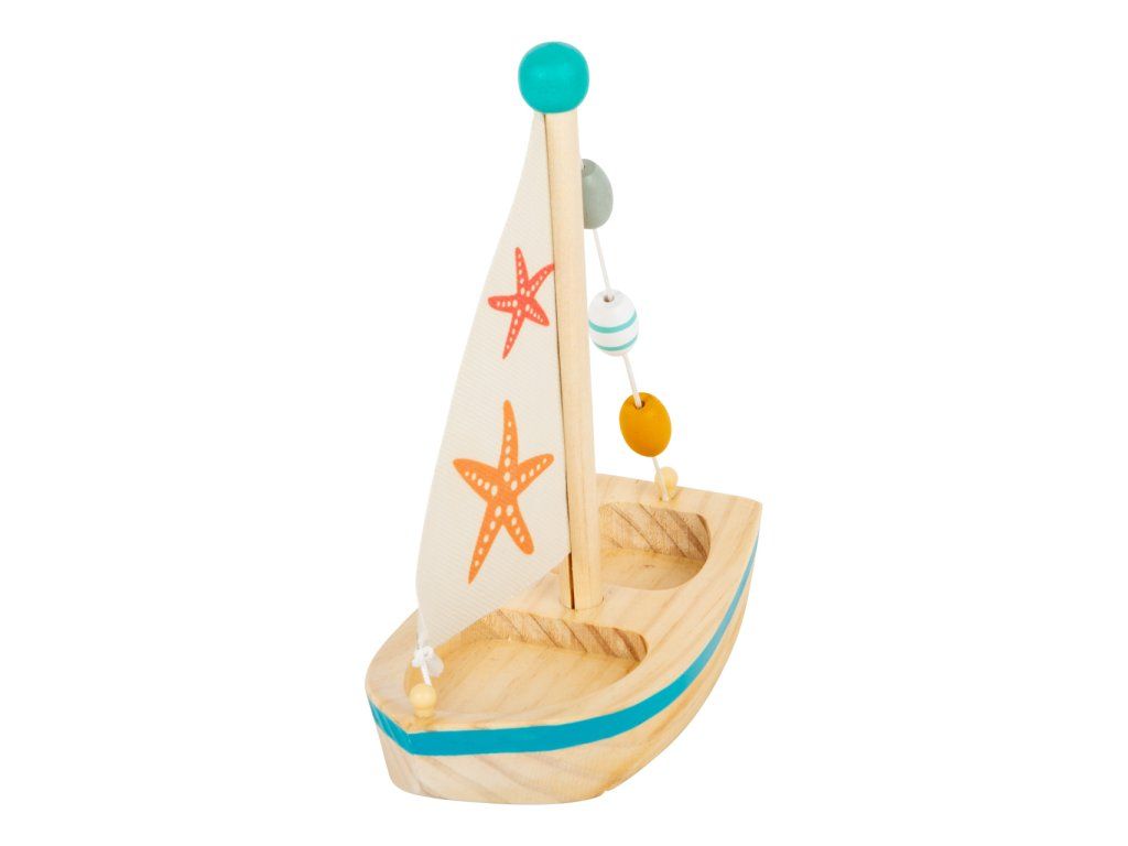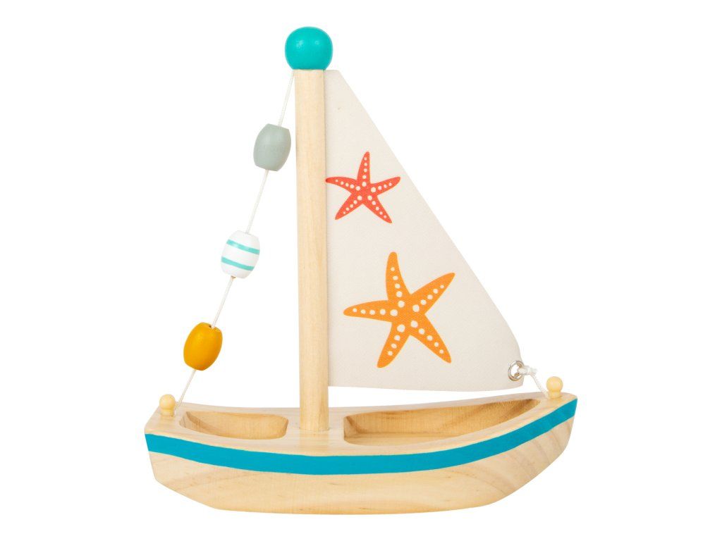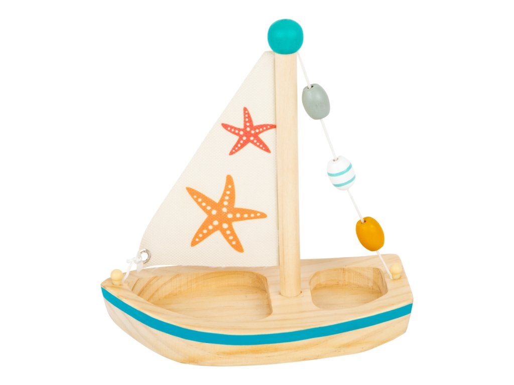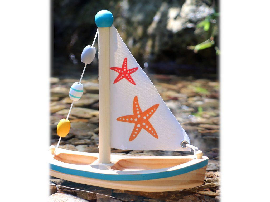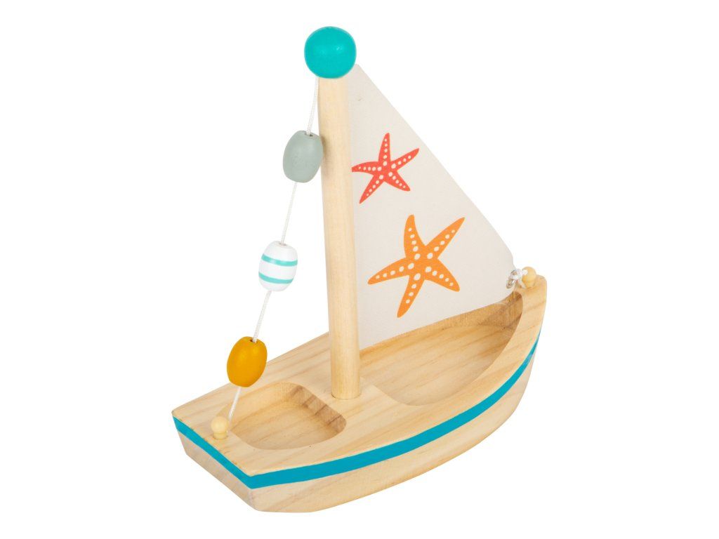 Všechny kapitány prosím o pozornost! S touto dřevěnou plachetnicí si děti nastaví kurz do světa plného vodních radovánek. Když mladí námořníci vytáhnou kotvu, už je nic nezastaví v jejich hře ať už ve vaně, na bazéně nebo u moře. Plachetnice je prostorná, takže do ní mohou postavit vlastní figurky. Plachetnice je dekorována dřevěnými korálky a potiskem hvězdic. Vodní hračky vyrobené ze dřeva jsou ekologičtější alternativou plastových a gumových hraček. Pro delší životnost hračky ji po vytažení z vody pořádně osušte. Hlavní vlastnosti: využití ve vaně, na bazéně nebo u mořehra podporuje fantaziipři plavbě v přírodě je poháněna větremDoplňkové parametry