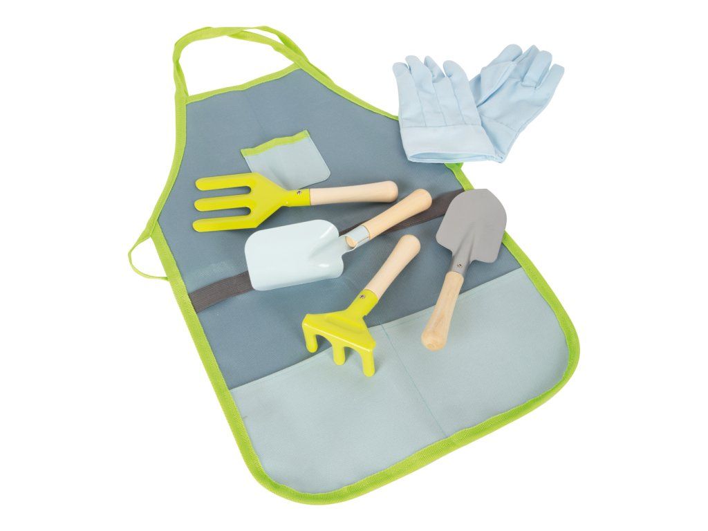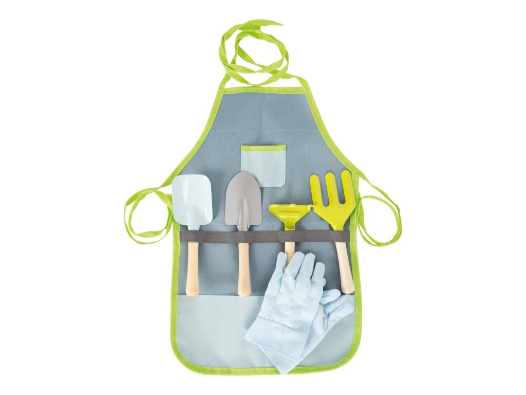 S touto praktickou sadou zahradních pomůcek, která se skládá ze zástěry pro děti s náprsními kapsami, zahradnických rukavic, čtyř malých zahradnických nástrojů (rýč, hrábě, lopata a vidle), budou mít děti vždy ten pravý nástroj po ruce! Záhradní nářadí z robustního kovu s dřevěnými rukojeťmi vhodnými pro děti. Tato zahradní zástěra v jednoduchých trendy barvách a rukavice chrání děti před nečistotami a poškozením oblečení. Je to absolutní nutnost pro všechny mladé zahradní fanoušky, kteří chtějí skutečně pomoci svým rodičům na zahradě! Zahradnické zástěry lze také použít jako kuchyňské zástěry či zástěry na malování! Ideální doplněk. Hlavní vlastnosti: ideální doplněk na zahraduzástěra, rukavice, 4 ks nářadíDoplňkové parametry