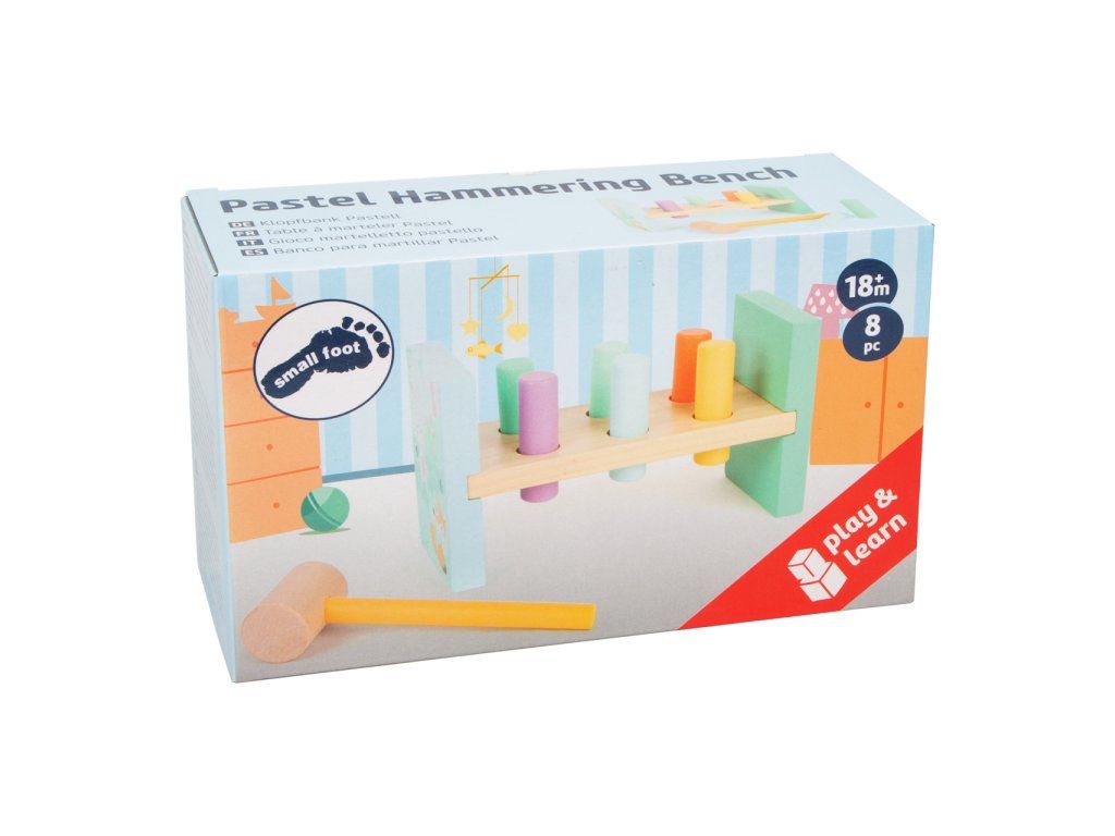 I zatloukání může být stylové! Se zatloukací hračkou v pastelových barvách si děti mohou změřit svou sílu. Klasická hra, která trénuje koordinaci ruka-oko a motoriku dětí. Zatloukačka má krásné barvy a ilustraci zvířátek. Po zatlučení všech kolíků hračku jednoduše otočte. Krásná zatloukací hračka je součástí produktové řady „Pastel“ a zaujme vysokým viditelným podílem dřeva a moderním zabarvením v pastelových barvách. Hlavní vlastnosti: ilustrováno, jemné pastelové barvyrobustní a odolné provedeníDoplňkové parametry