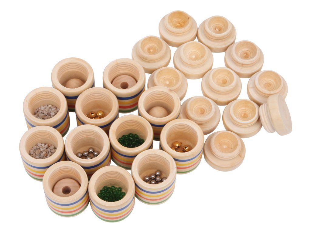 12 vysoce kvalitních dřevěných dóz se šroubovacím uzávěrem dělá z této zvukové hry trenéra paměti. Ve dvou dózách je vždy stejný obsah a cílem hry je tento pár najít. Na vás je, co do dóziček vložíte. Uslyšíš rozdíl mezi skleněnými korálky, oblázky či zvonečky? Hlavní vlastnosti: sada obsahuje 12ks dřevěných dózičekhra je určena pro 1-2 hráčetrénuje soustředění a paměťDoplňkové parametry