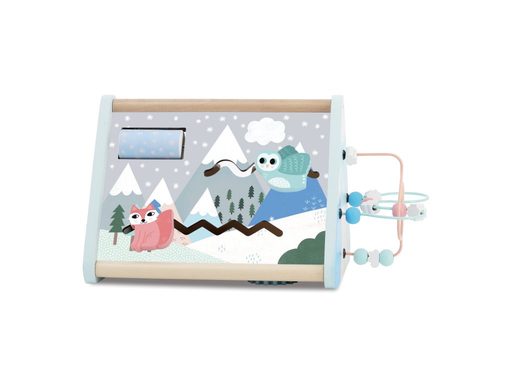 Nechejte se pozvat na výpravu do poetického zimního království návrhářky Michelle Carlslund. Spolu s polárními zvířátky a eskymáky mohou děti prostřednictvím různorodých aktivit rozvíjet jemnou motoriku, orientaci v prostoru a poznávací dovednosti. Na stěnách hranolu naleznete korálkové bludiště, vkládačku, chrastící válec, ozubená kolečka, řadu dalších posuvných i otáčivých prvků a pružně upevněná dvířka zpřístupňující vnitřní prostor. Svou jedinečnou barevností a motivy se hračka stane opravdovou ozdobou dětského pokoje. Hlavní vlastnosti: motorický hranol a 5 dílků vkládačkyrůzné motorické, vizuální i zvukové atrakcedesign Michelle Carlslundodolné dřevěné provedení Cestujte s námi v naivním a elegantním světě dánské ilustrátorky Michelle Carlslund, světě jemných barev, který je plný roztomilých medvědů a přátelských ptáčků. V roce 2010, když Michelle ještě studovala grafický design, vytiskla doma své ilustrace a zkusila je prodat na designovém trhu, kde se setkaly s velkým úspěchem! Několik obchůdků chtělo začít prodávat její výtvory, a tak ji napadlo, že by bylo fajn začít podnikat. Michelle se rychle stala uznávanou nezávislou ilustrátorkou. Dnes lze její ekologická grafická díla zakoupit po celém světě v designových buticích, papírnictvích a dětských obchodech. Michelle se inspiruje vším kolem ní. Její výtvory jsou něžné a poetické, stylizovaný a dětinský styl, který se perfektně prolíná s hračkami firmy Vilac. „Jsem hranolky milující, časová optimistka a tvůrkyně ekologických plakátů a ilustrátorka na volné noze se sídlem v dánské Kodani,“ to by řekla ilustrátorka Michelle Carlslundová, kdyby se měla popsat jednou větou.Doplňkové parametry