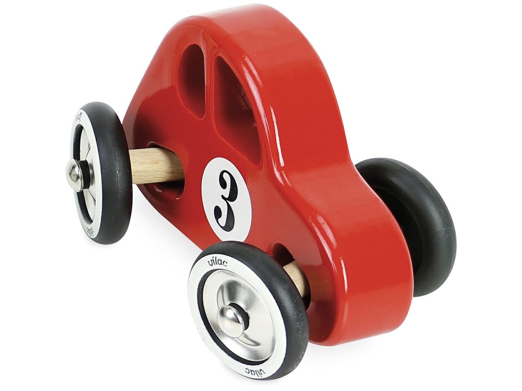 Červené autíčko vyrobené z lakovaného dřeva s kovovými pogumovanými koly. Autíčko je speciální v tom, že zatáčí doleva a doprava díky speciálnímu řešení nápravy. Vyrobeno ve Francii. Hlavní vlastnosti: vyrobeno ve FranciiDoplňkové parametry