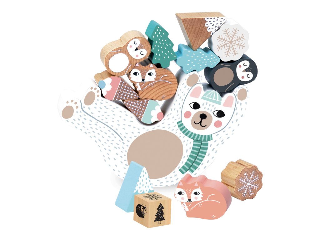 Balanční hra v jemných skandinávských tónech. Hoďte kostkou a podle barvy, která vám padne, zkuste na Eddyho břicho naskládat sněhové vločky, polární lišky, tučňáky nebo hory a chutnou zmrzlinu. Budete nejšikovnější, nespadne vám vše z Eddyho?!Tato hra pomůže s rozvojem jemné motoriky, zručnosti a soustředění.Ilustrováno Michelle Carlslund. Hlavní vlastnosti: 1 základna, 12 herních dílků a kostkailustrace Michelle Carlslundvyrobeno ekologicky, šetrně k životnímu prostředí Cestujte s námi v naivním a elegantním světě dánské ilustrátorky Michelle Carlslund, světě jemných barev, který je plný roztomilých medvědů a přátelských ptáčků. V roce 2010, když Michelle ještě studovala grafický design, vytiskla doma své ilustrace a zkusila je prodat na designovém trhu, kde se setkaly s velkým úspěchem! Několik obchůdků chtělo začít prodávat její výtvory, a tak ji napadlo, že by bylo fajn začít podnikat. Michelle se rychle stala uznávanou nezávislou ilustrátorkou. Dnes lze její ekologická grafická díla zakoupit po celém světě v designových buticích, papírnictvích a dětských obchodech. Michelle se inspiruje vším kolem ní. Její výtvory jsou něžné a poetické, stylizovaný a dětinský styl, který se perfektně prolíná s hračkami firmy Vilac. „Jsem hranolky milující, časová optimistka a tvůrkyně ekologických plakátů a ilustrátorka na volné noze se sídlem v dánské Kodani,“ to by řekla ilustrátorka Michelle Carlslundová, kdyby se měla popsat jednou větou.Doplňkové parametry