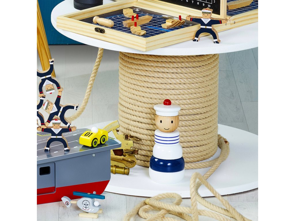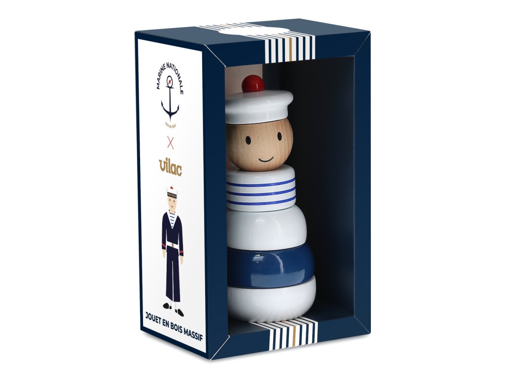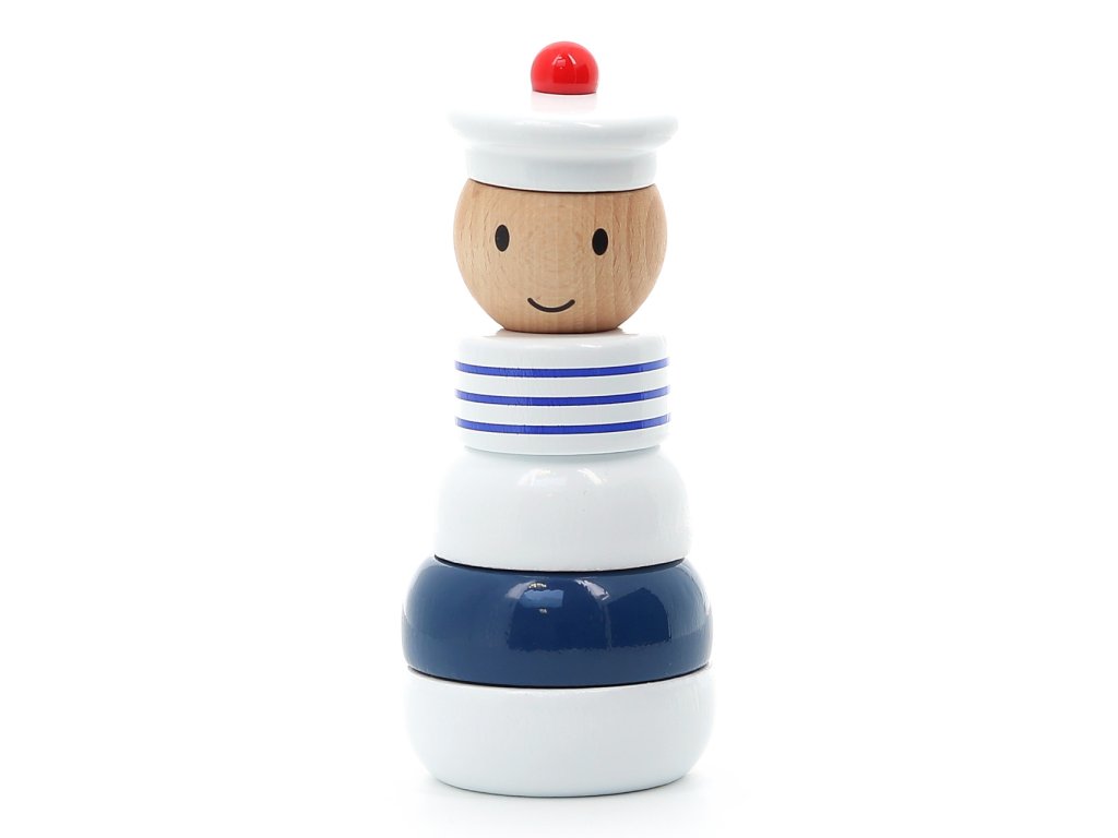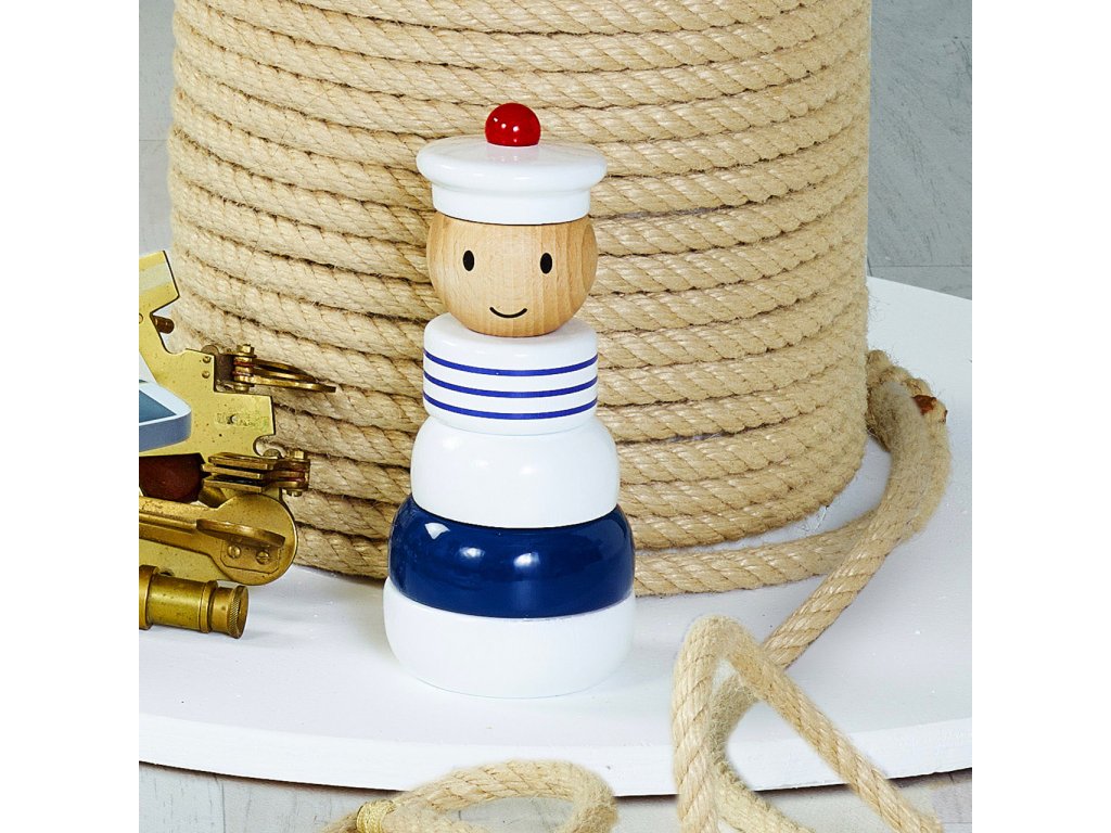 Robustní nasazovací věž ve tvaru námořníka je vyrobena z masivního dřeva. Svou originální barevností vkusně doplní a zútulní dětský pokojíček. Hlavní vlastnosti: základna a 4 díly skládačkyjedinečné barevné zpracovánívyrobeno ve FranciiDoplňkové parametry