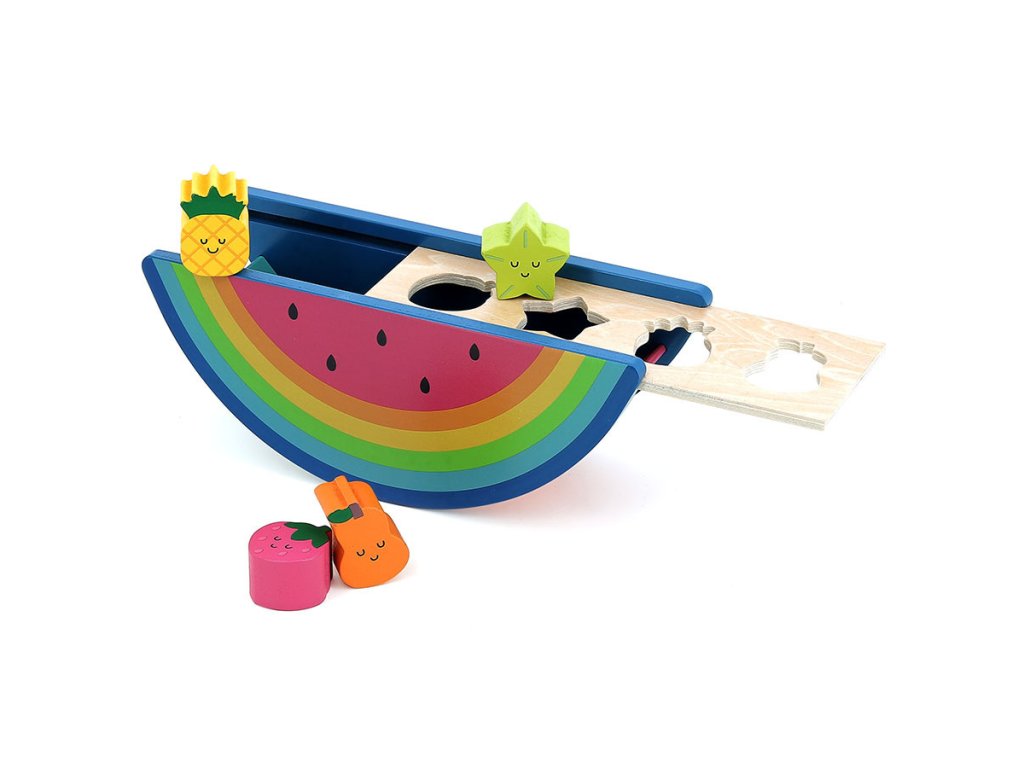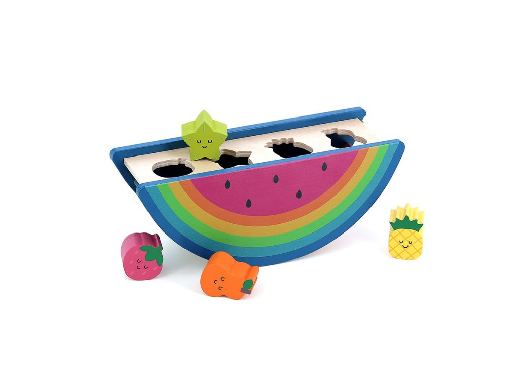 Dá si někdo hrušku? Nebo raději ananas, jahodu či karambolu? Vkládačka ve tvaru melounu podle návrhu Andy Westface potěší každé dítě. Tato raná hračka inspirovaná Montessori v jasných barvách má 4 tvarované otvory pro vkládání ovoce. Víko s otvory je posouvací, aby šly ovocné tvary jednoduše vyjmout a pokračovat ve vkládání. Při hře děti rozvíjejí mnoho dovedností jako je soustředění, obratnost, motorika, trpělivost a koordinace ruka-oko. Naučí se manipulovat s ovocem tak, aby se vešlo do odpovídajících otvorů. Díky unikátnímu designu se bude vkládačka krásně vyjímat v každém dětském pokojíčku nebo herně. Hlavní vlastnosti: vkládačka ve tvaru melounu, 4 vkládací tvary – jahoda, karambola, ananas, hruškanápaditý design Andy Westfacehračka inspirovaná Montessorirozvíjí obratnost, koordinaci ruka-oko a trpělivostpodporuje představivost a soustředění Andy Westface je ilustrátor žijící a působící v Hongkongu. Svou prací se snaží zprostředkovat silné pocity a jasné myšlenky za pomoci jednoduchých tvarů, kompozic i barevnosti. Typickými prvky jeho děl jsou zvířata a duha, které si oblíbil pro jejich čistotu, upřímnost a schopnost vzbuzovat radost.Doplňkové parametry