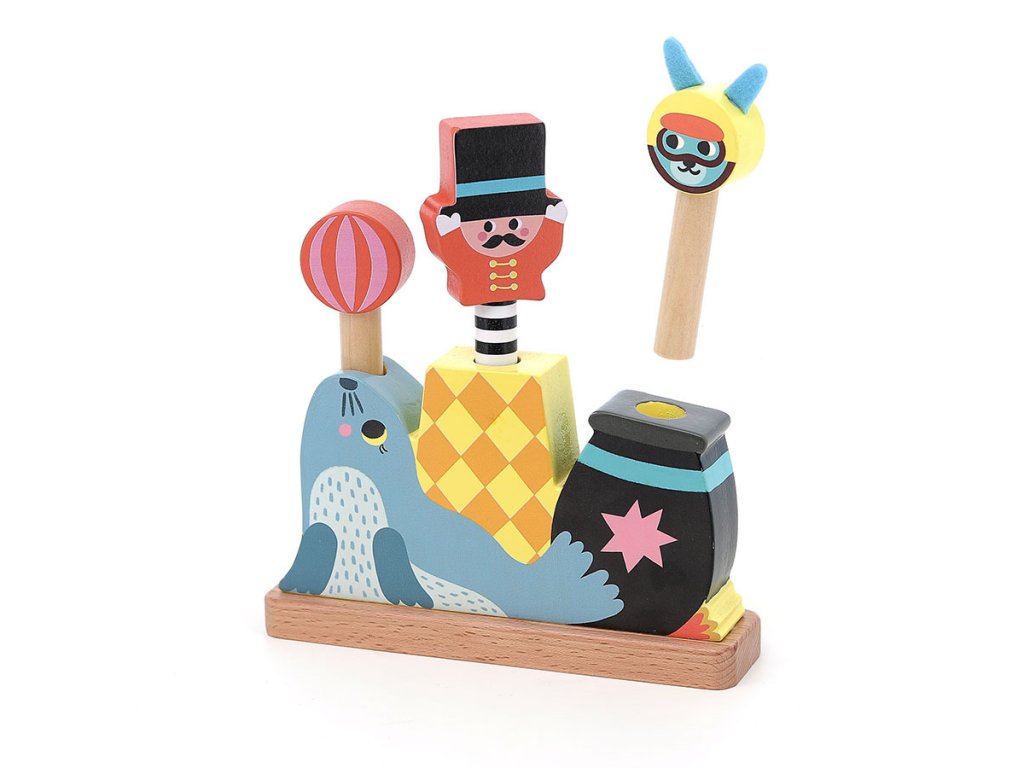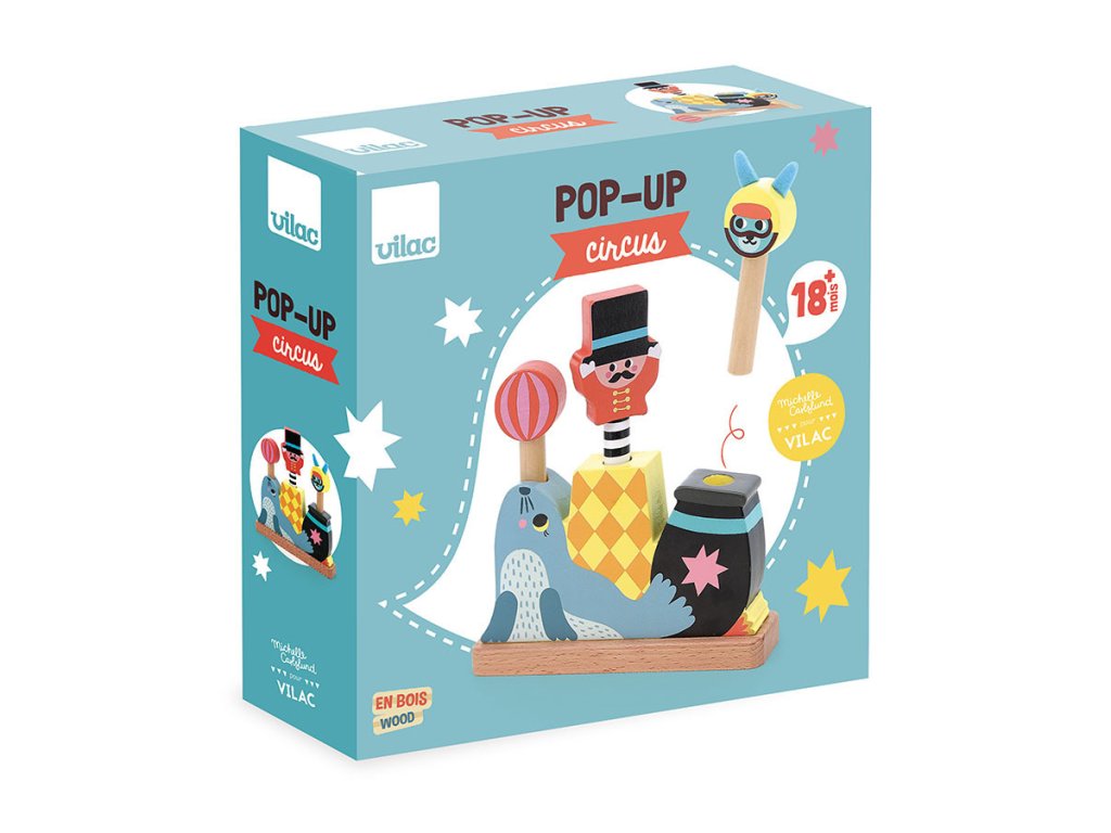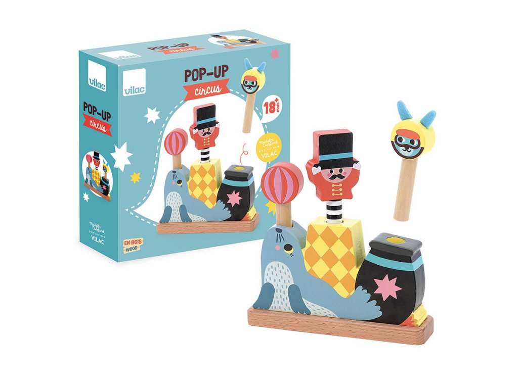 Krásná dřevěná vystřelovací hra s ilustracemi umělkyně Michelle Carlslund v motivu cirkusových čísel. Balón a dvě postavičky vyskakují z cirkusové základny. Zázrak vynalézavosti a jednoduchosti jistě okouzlí malé i velké. Zatlačte na balón či postavičky a uvidíte, jak vyskočí do vzduchu. Hračka je ideální pro rozvoj jemné motoriky a koordinace ruka-oko. Hlavní vlastnosti: 1 cirkusová základna, 3 vyskakující figurkypodněcuje představivost a nápaditou hruvyrobeno ekologicky, šetrně k životnímu prostředídesign Michelle Carlslund Cestujte s námi v naivním a elegantním světě dánské ilustrátorky Michelle Carlslund, světě jemných barev, který je plný roztomilých medvědů a přátelských ptáčků. V roce 2010, když Michelle ještě studovala grafický design, vytiskla doma své ilustrace a zkusila je prodat na designovém trhu, kde se setkaly s velkým úspěchem! Několik obchůdků chtělo začít prodávat její výtvory, a tak ji napadlo, že by bylo fajn začít podnikat. Michelle se rychle stala uznávanou nezávislou ilustrátorkou. Dnes lze její ekologická grafická díla zakoupit po celém světě v designových buticích, papírnictvích a dětských obchodech. Michelle se inspiruje vším kolem ní. Její výtvory jsou něžné a poetické, stylizovaný a dětinský styl, který se perfektně prolíná s hračkami firmy Vilac. „Jsem hranolky milující, časová optimistka a tvůrkyně ekologických plakátů a ilustrátorka na volné noze se sídlem v dánské Kodani,“ to by řekla ilustrátorka Michelle Carlslundová, kdyby se měla popsat jednou větou.Doplňkové parametry