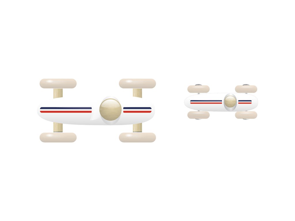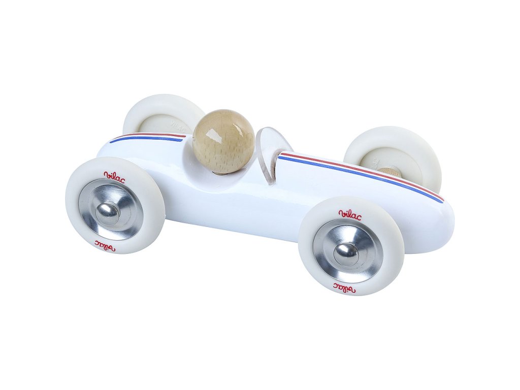 Model bílého vintage auta ze závodu Grand Prix. Vyrobeno z lakovaného dřeva ve Francii. Má velká bílá gumová kola, která zajišťují tichý chod na všech podlahách. Hlavní vlastnosti: vyrobeno ve FranciiDoplňkové parametry