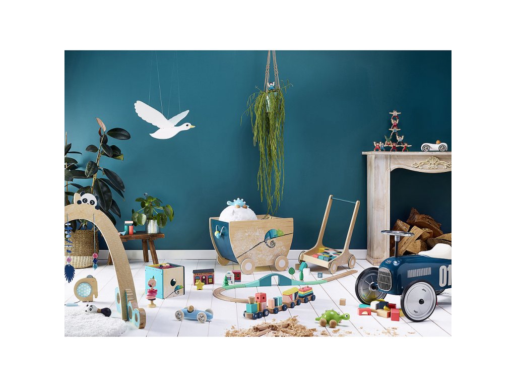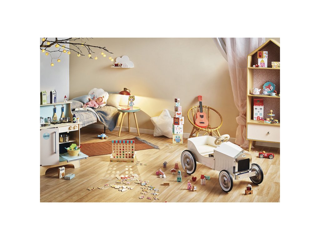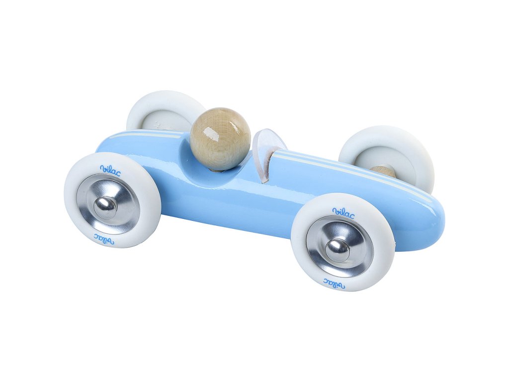 Model světle modrého vintage auta ze závodu Grand Prix. Vyrobeno z lakovaného dřeva ve Francii. Má velká bílá gumová kola, která zajišťují tichý chod na všech podlahách. Hlavní vlastnosti: vyrobeno ve FranciiDoplňkové parametry