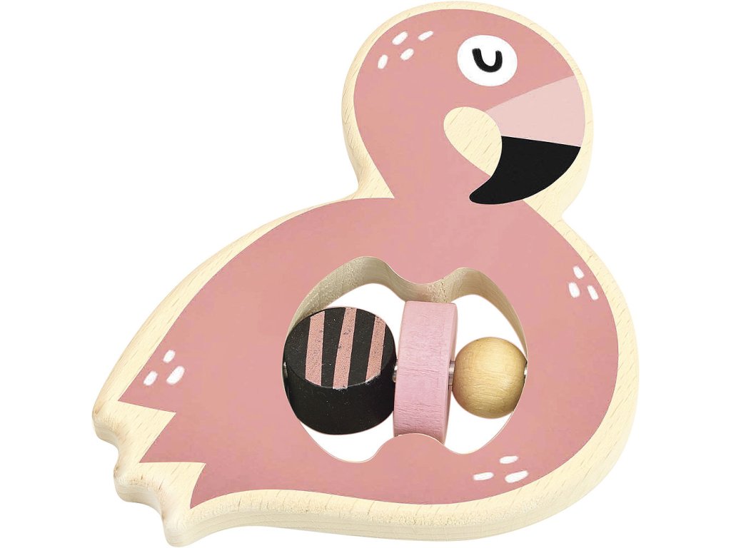 Krásné dřevěné chrastítko s motivem plameňáka, navrženo Michelle Carlslund. Uprostřed 3 barevné korálky, které příjemně chrastí. Baleno v textilním pytlíku, je ideálním narozeninovým dárkem. Vyrobeno ve Francii. Hlavní vlastnosti: vyrobeno ve Franciidesign Michelle Carlslund Cestujte s námi v naivním a elegantním světě dánské ilustrátorky Michelle Carlslund, světě jemných barev, který je plný roztomilých medvědů a přátelských ptáčků. V roce 2010, když Michelle ještě studovala grafický design, vytiskla doma své ilustrace a zkusila je prodat na designovém trhu, kde se setkaly s velkým úspěchem! Několik obchůdků chtělo začít prodávat její výtvory, a tak ji napadlo, že by bylo fajn začít podnikat. Michelle se rychle stala uznávanou nezávislou ilustrátorkou. Dnes lze její ekologická grafická díla zakoupit po celém světě v designových buticích, papírnictvích a dětských obchodech. Michelle se inspiruje vším kolem ní. Její výtvory jsou něžné a poetické, stylizovaný a dětinský styl, který se perfektně prolíná s hračkami firmy Vilac. „Jsem hranolky milující, časová optimistka a tvůrkyně ekologických plakátů a ilustrátorka na volné noze se sídlem v dánské Kodani,“ to by řekla ilustrátorka Michelle Carlslundová, kdyby se měla popsat jednou větou.Doplňkové parametry
