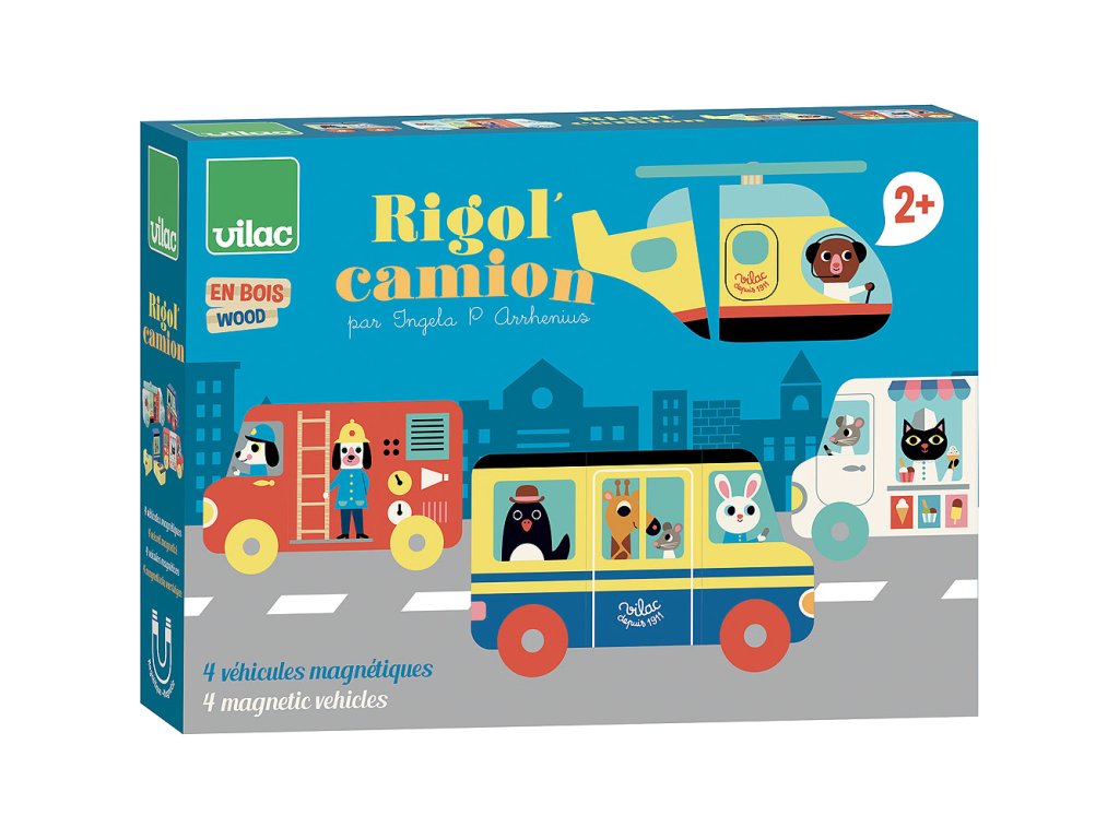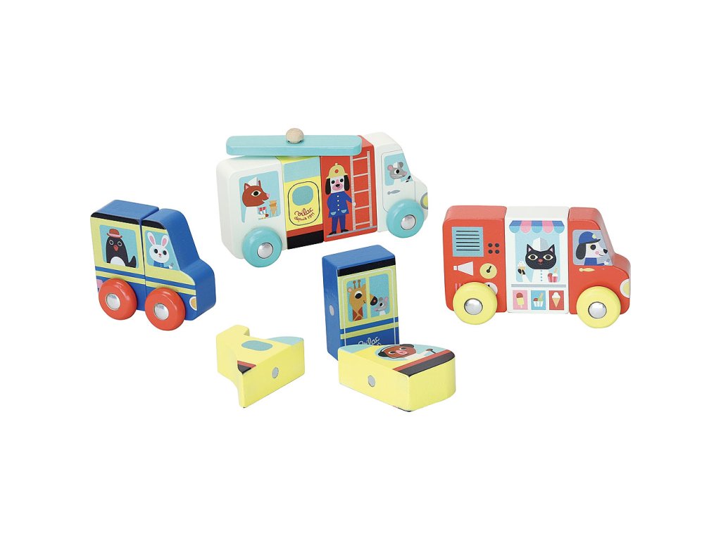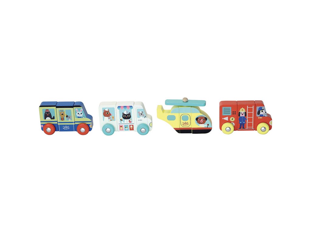 Zábavné dřevěné magnetické puzzle s ilustrací Ingely P. Arrhenius. Vůz hasiči, autobus, zmrzlinový vůz a helikoptéra, jejichž části můžete kombinovat. Vhodné od 2 let. Hlavní vlastnosti: zábavné puzzle trošku jinakdesign Ingela P. Arrhenius Švédská umělkyně Ingela Peterson Arrhenius se narodila v roce 1967. Umění a design měly vždy místo v jejím životě a než začala její kariéra ilustrátorky, Ingela pracovala jako umělecká vedoucí ve Stockholmu. Poté studovala reklamní a grafický design na umělecké škole také ve Stockholmu. V roce 1992 začala podnikat jako ilustrátorka na volné noze a pracovala mezinárodně napříč reklamou, designem, nakladatelstvím… V minulosti vytvářela tiskové vzory pro tkaniny, tapety, papírnictví, také pracovala na obalech, produktovém designu, bytových doplňcích a hračkách. Její plakáty a designové hračky najdete po celém světě. Má vášeň pro retro styl, což je jasně vidět na jejich dílech a také v jejím nadšení pro typografii a barvy. Nyní žije ve Stockholmu s manželem a dvěma syny.Doplňkové parametry