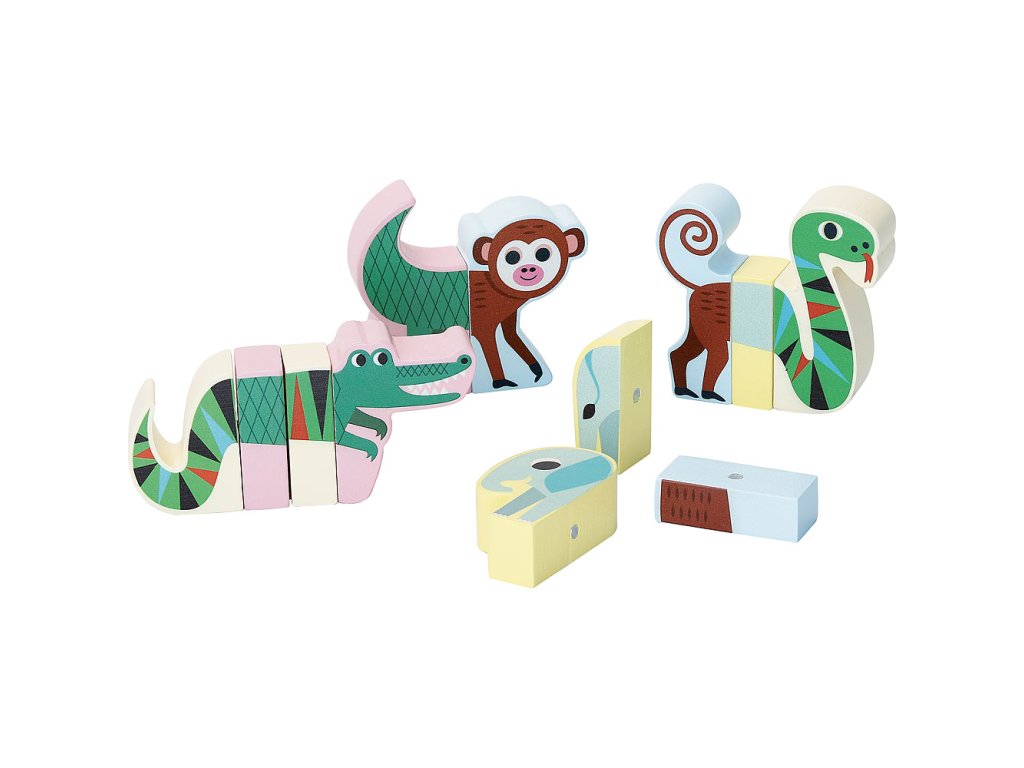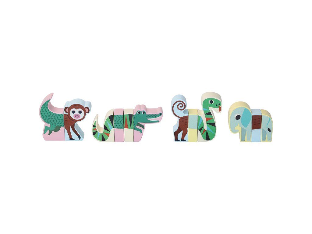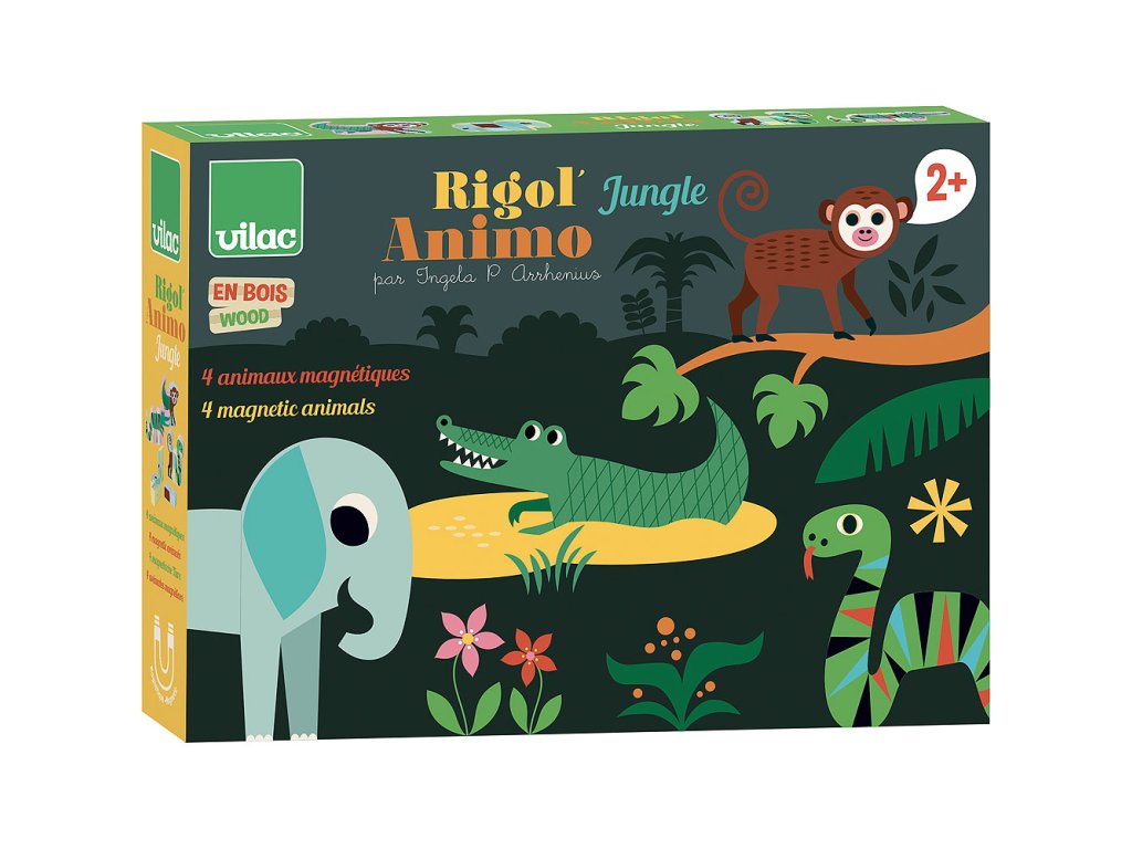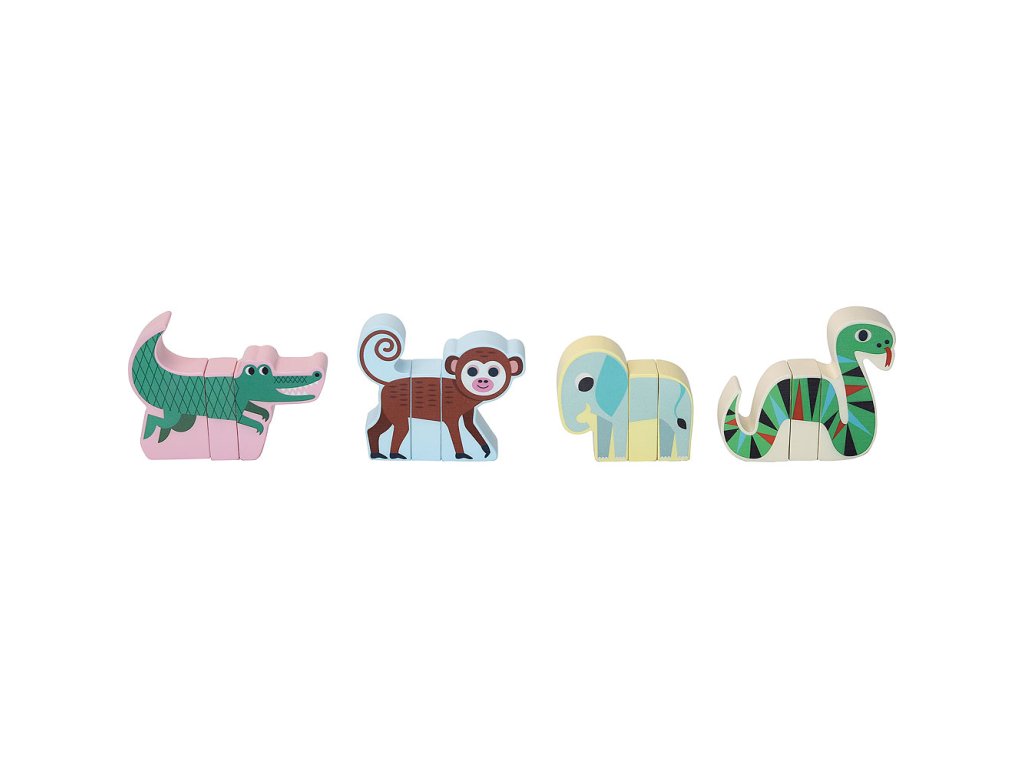 Zábavné dřevěné magnetické puzzle s ilustrací Ingely P. Arrhenius. Čtyři zvířátka džungle, jejichž těla můžete kombinovat. Vhodné od 2 let. Hlavní vlastnosti: rozvíjí motoriku dětíobsahuje 12 dílkůdesign Ingela P. Arrhenius Švédská umělkyně Ingela Peterson Arrhenius se narodila v roce 1967. Umění a design měly vždy místo v jejím životě a než začala její kariéra ilustrátorky, Ingela pracovala jako umělecká vedoucí ve Stockholmu. Poté studovala reklamní a grafický design na umělecké škole také ve Stockholmu. V roce 1992 začala podnikat jako ilustrátorka na volné noze a pracovala mezinárodně napříč reklamou, designem, nakladatelstvím… V minulosti vytvářela tiskové vzory pro tkaniny, tapety, papírnictví, také pracovala na obalech, produktovém designu, bytových doplňcích a hračkách. Její plakáty a designové hračky najdete po celém světě. Má vášeň pro retro styl, což je jasně vidět na jejich dílech a také v jejím nadšení pro typografii a barvy. Nyní žije ve Stockholmu s manželem a dvěma syny.Doplňkové parametry