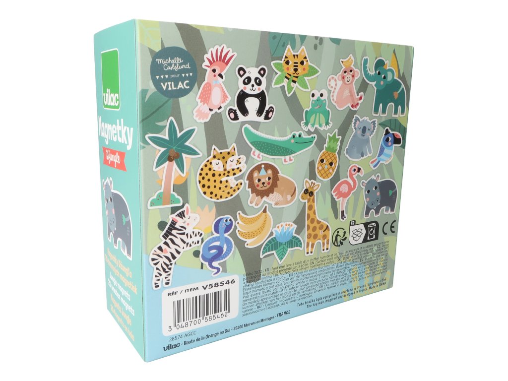 Sada dřevěných magnetů s nezaměnitelnými ilustracemi Michelle Carlslund. Vydejte se do divočiny v doprovodu těch nejroztomilejších zvířátek! Charakteristickou barevností magnetky pomohou zútulnit Váš domov, zpestří magnetickou tabuli, nebo i lednici. Kvalitní potisk a odolné provedení zajistí dlouhotrvající zábavu. Hlavní vlastnosti: 20 ks různých magnetekdesign Michelle Carlslunddekorační prvek vhodný do pokoje i na lednici Cestujte s námi v naivním a elegantním světě dánské ilustrátorky Michelle Carlslund, světě jemných barev, který je plný roztomilých medvědů a přátelských ptáčků. V roce 2010, když Michelle ještě studovala grafický design, vytiskla doma své ilustrace a zkusila je prodat na designovém trhu, kde se setkaly s velkým úspěchem! Několik obchůdků chtělo začít prodávat její výtvory, a tak ji napadlo, že by bylo fajn začít podnikat. Michelle se rychle stala uznávanou nezávislou ilustrátorkou. Dnes lze její ekologická grafická díla zakoupit po celém světě v designových buticích, papírnictvích a dětských obchodech. Michelle se inspiruje vším kolem ní. Její výtvory jsou něžné a poetické, stylizovaný a dětinský styl, který se perfektně prolíná s hračkami firmy Vilac. „Jsem hranolky milující, časová optimistka a tvůrkyně ekologických plakátů a ilustrátorka na volné noze se sídlem v dánské Kodani,“ to by řekla ilustrátorka Michelle Carlslundová, kdyby se měla popsat jednou větou.Doplňkové parametry