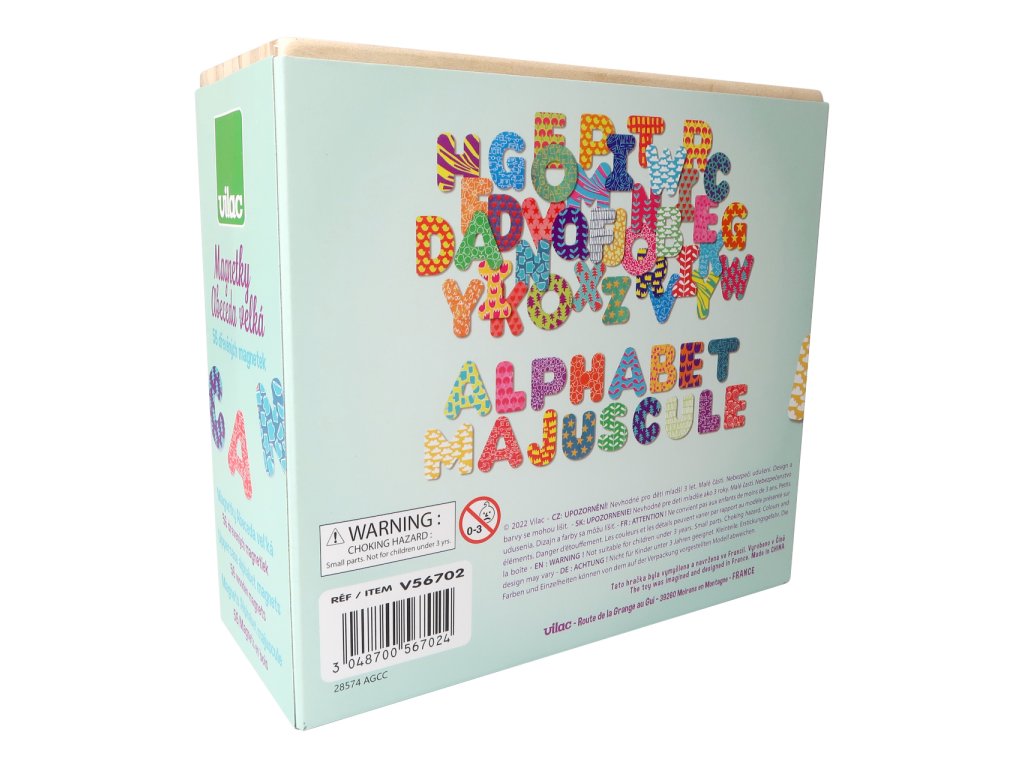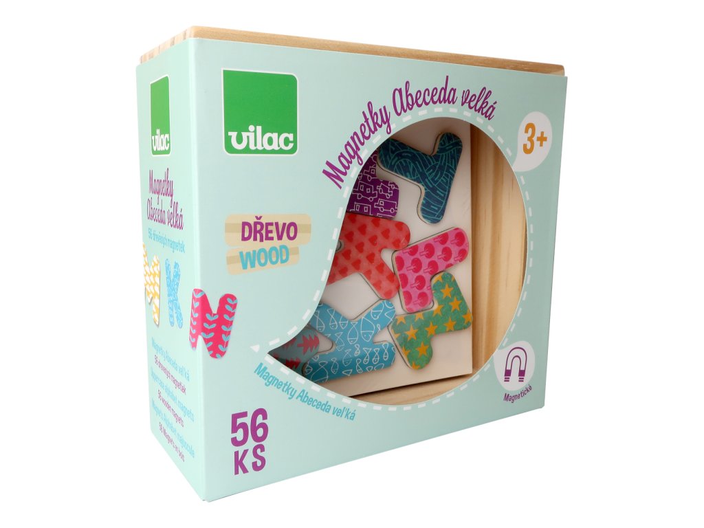 Magnetická, dřevěná písmena abecedy mohou děti naučit jejich první slova. Je možno si s nimi hrát na lednici nebo magnetické tabulce. Jsou zdobena pestrou paletou poutavých barev a jedinečných vzorů. Každé písmeno je tak ještě snadněji rozpoznatelné a motivuje k vytváření stále nových spojení. Hlavní vlastnosti: 56 ks magnetekjasné, výrazné barvy a nápadité vzoryvhodné jako dekorační prvek i didaktická pomůckaDoplňkové parametry