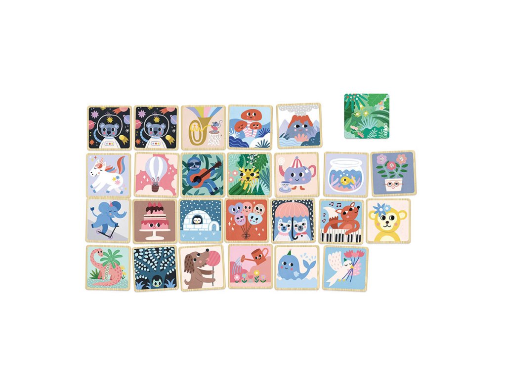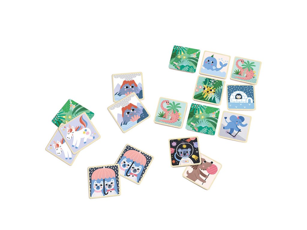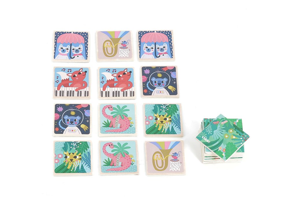 Hledáte originální pexeso? Chcete vidět lišku hrající na klavír, koalu ve hvězdách, dva medvědy pod deštníkem, psa držícího lízátko, nebo slona jezdícího na koloběžce? Vypravte se do fantastického světa zvířat za doprovodu krásných ilustrací od Michelle Carlslund. Herní dílky jsou svými rozměry přizpůsobeny ručičkám nejmenších dětí. Jsou vyrobeny z odolného dřeva a opatřeny kvalitním potiskem. Pexeso dětem umožní obohatit si slovní zásobu, paměť a smysl pro pozorování. Obsahuje 48 dřevěných dílků. Hra je dodávána v krásně ilustrované kartonové krabičce, která se na poličce snadno stane nepřehlédnutelnou dekorací. Hlavní vlastnosti: 48 herních dílkůdesign Michelle Carlslundodolné dřevěné provedenípraktické a atraktivní balení Cestujte s námi v naivním a elegantním světě dánské ilustrátorky Michelle Carlslund, světě jemných barev, který je plný roztomilých medvědů a přátelských ptáčků. V roce 2010, když Michelle ještě studovala grafický design, vytiskla doma své ilustrace a zkusila je prodat na designovém trhu, kde se setkaly s velkým úspěchem! Několik obchůdků chtělo začít prodávat její výtvory, a tak ji napadlo, že by bylo fajn začít podnikat. Michelle se rychle stala uznávanou nezávislou ilustrátorkou. Dnes lze její ekologická grafická díla zakoupit po celém světě v designových buticích, papírnictvích a dětských obchodech. Michelle se inspiruje vším kolem ní. Její výtvory jsou něžné a poetické, stylizovaný a dětinský styl, který se perfektně prolíná s hračkami firmy Vilac. „Jsem hranolky milující, časová optimistka a tvůrkyně ekologických plakátů a ilustrátorka na volné noze se sídlem v dánské Kodani,“ to by řekla ilustrátorka Michelle Carlslundová, kdyby se měla popsat jednou větou.Doplňkové parametry
