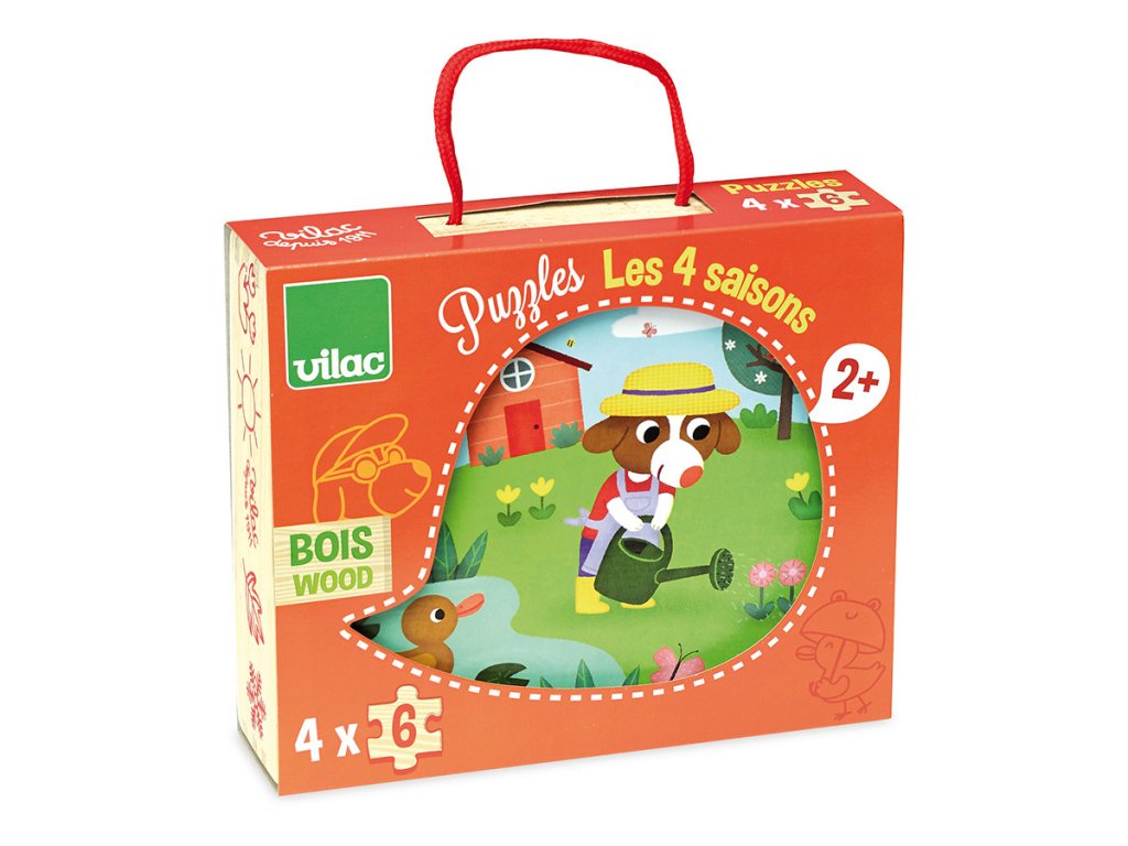 Čtvery dřevěná puzzle o šesti dílcích s tematikou čtyř ročních období. Zabaleno v pěkném dřevěném boxu s bavlněnou rukojetí. Hlavní vlastnosti: 4 puzzle po 6 dílcích praktický úložný boxDoplňkové parametry