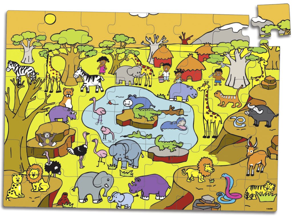 Dětské puzzle s 48 dílky v motivech savany, v pěkné dřevěné krabici. Dřevěné puzzle má pěkné a syté barvy. Hlavní vlastnosti: podlahové puzzle s velkými dřevěnými dílkyobsahuje 48 dílkůrozvíjí logické myšlení dětíDoplňkové parametry