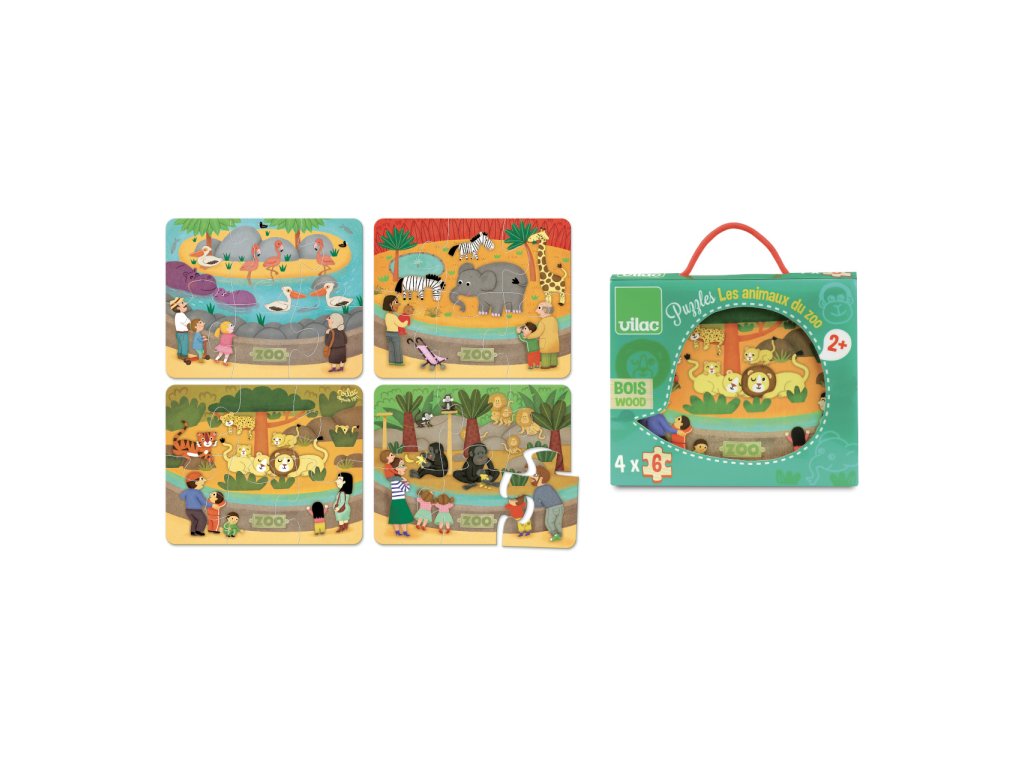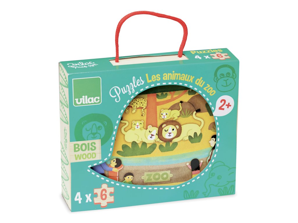 Dřevěné puzzle o šesti dílcích s tematikou ZOO. Zabaleno v pěkném dřevěném boxu s bavlněnou rukojetí. Hlavní vlastnosti: 4 puzzle po 6 dílcích praktický úložný boxDoplňkové parametry
