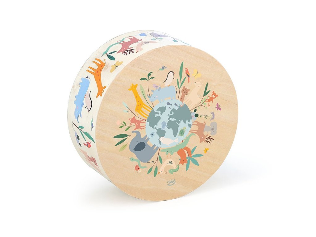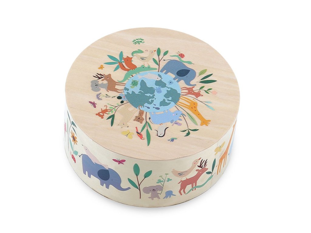 Vilac Dřevěný cajón bubínek Zvířata světa Sarah Betz