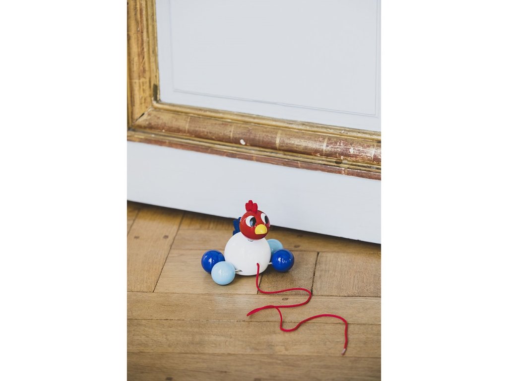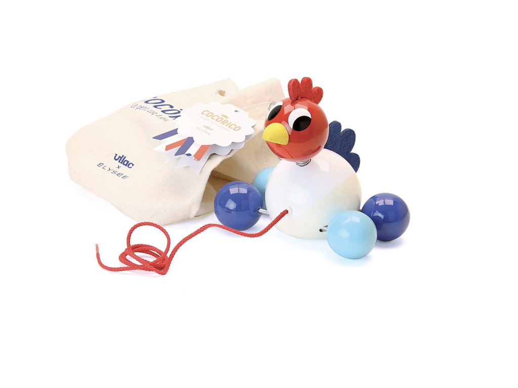 Kykyryký! Tento malý dřevěný tahací kohout – symbol Francie – byl vyroben v dílně v pohoří Jura. Skládá se z lakovaného dřeva a plstě, oko potěší jeho barvy francouzské trikolory. Zabaleno v bavlněném pytlíku s potiskem. Vyrobeno 100% ve Francii v pohoří Jura. Dřevěná hračka ze speciální řady Elysée Présidence de la République, která oslavuje a podporuje francouzký prezidentský palác Palais de l’Élysée, který se nachází v centru Paříže, nedaleko Avenue des Champs-Élysées, po které má Elysejský palác svůj název. Od roku 1873 je sídlem francouzských prezidentů. Prodej každého produktu přispívá k financování renovačních prací v Palais de l'Elysée, přispívá tak k zachování tohoto kulturního a historického dědictví. Hlavní vlastnosti: podporuje rovnováhu a koordinaci pohybůvyrobeno ve Franciiedice Elysée Présidence de la RépubliqueDoplňkové parametry
