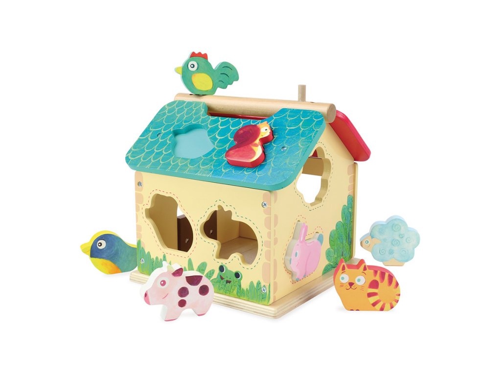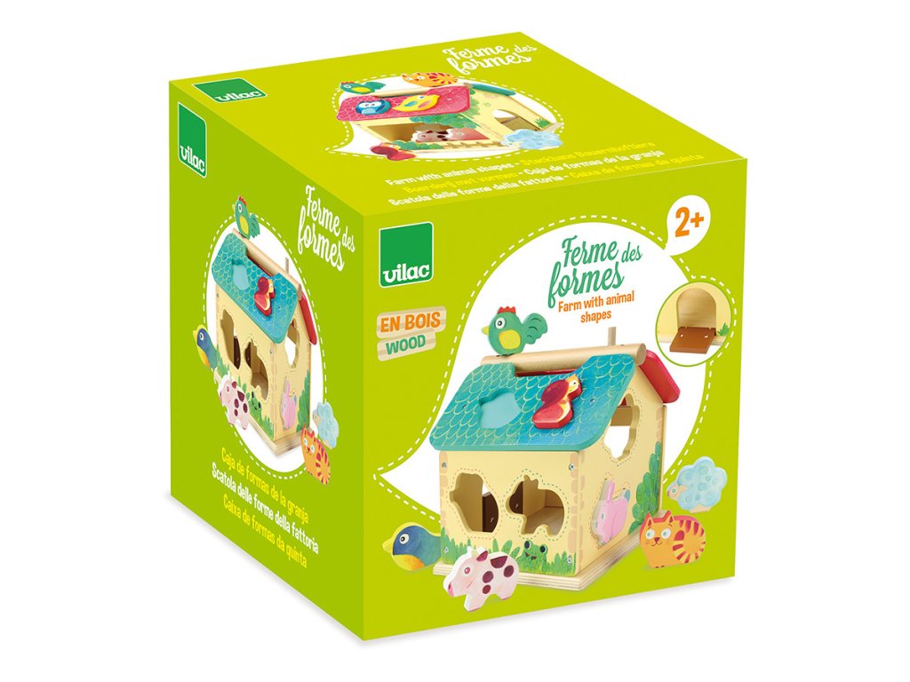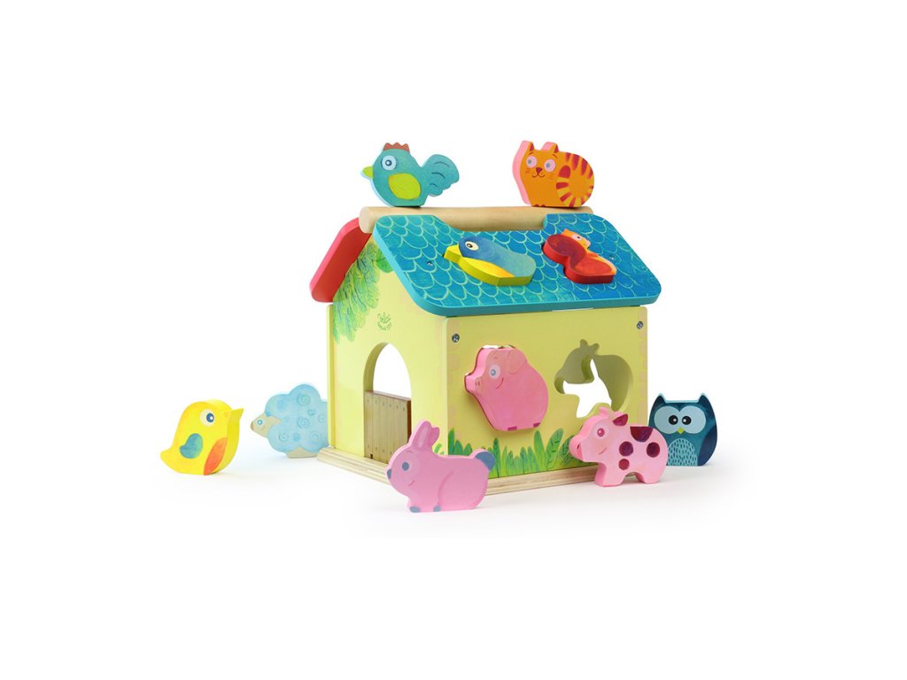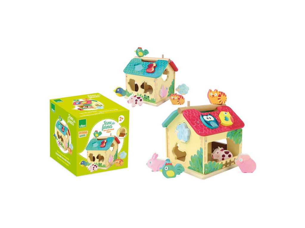Dřevěná barevná farma s vkládacími otvory pro každé ze zvířátek. Děti se při hře učí poznávat tvary, barvy a zvířata, trénují si jemnou motoriku. Obsahuje deset dřevěných zvířátek. Hlavní vlastnosti: obsahuje 1 domeček a 10 zvířátektrénuje jemnou motoriku dětíDoplňkové parametry