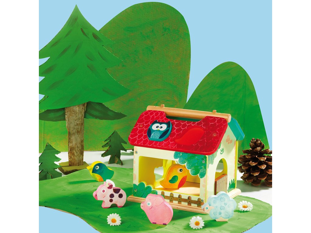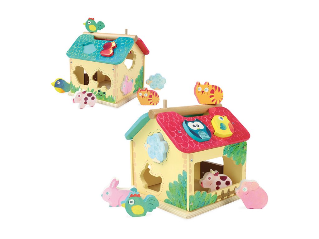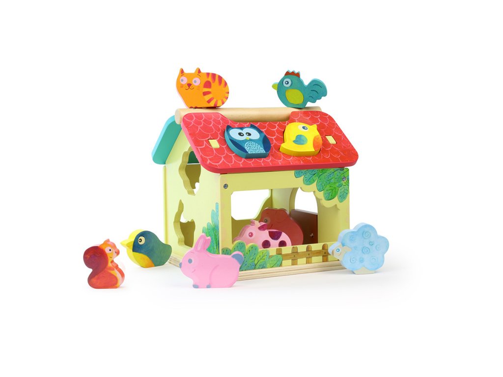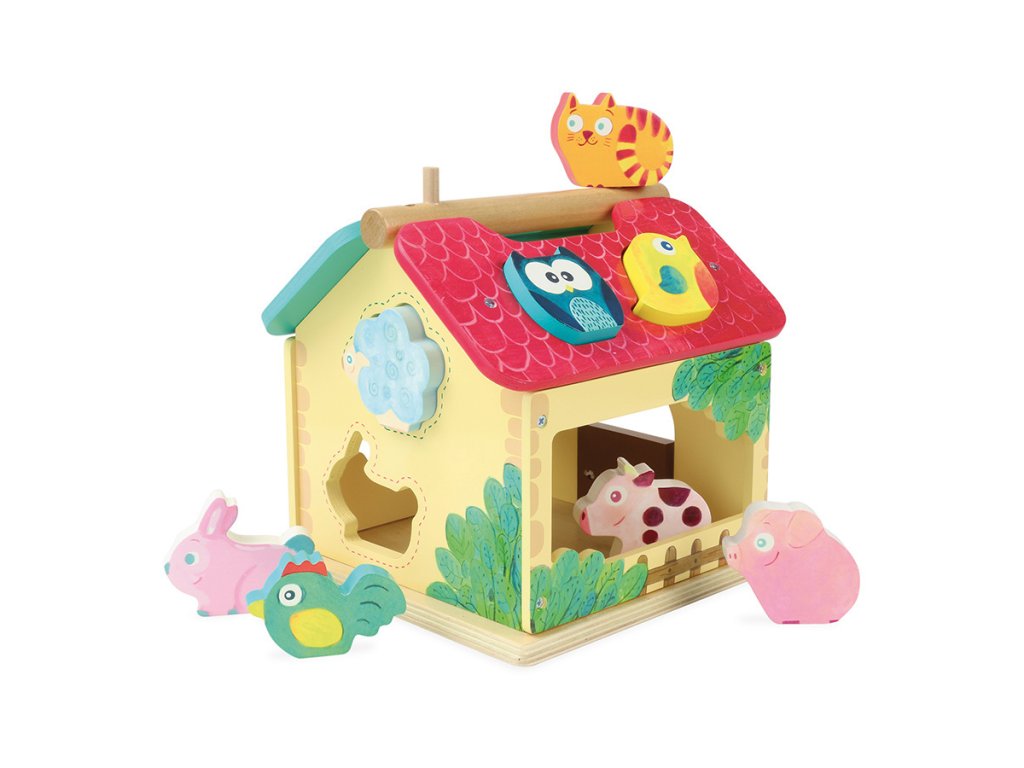 Dřevěná barevná farma s vkládacími otvory pro každé ze zvířátek. Děti se při hře učí poznávat tvary, barvy a zvířata, trénují si jemnou motoriku. Obsahuje deset dřevěných zvířátek. Hlavní vlastnosti: obsahuje 1 domeček a 10 zvířátektrénuje jemnou motoriku dětíDoplňkové parametry
