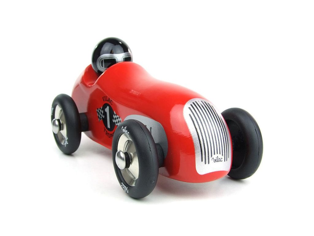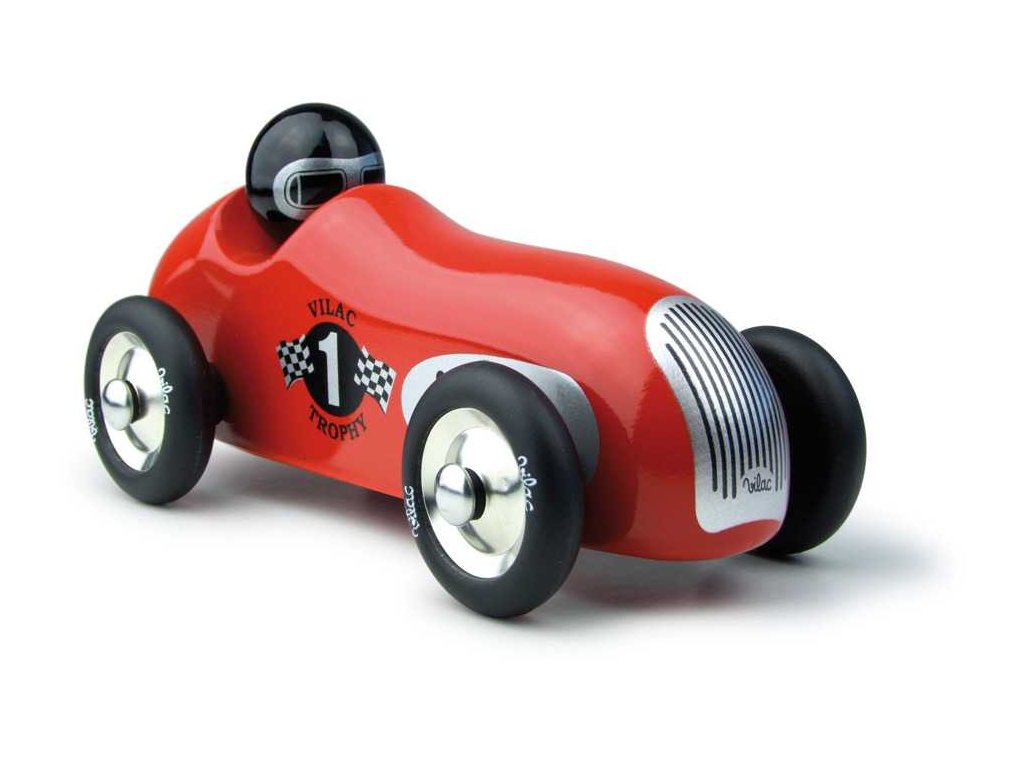 Červené vintage závodní auto vyrobeno z lakovaného dřeva s kovovými pogumovanými koly. Je vhodné jak ke hraní tak jako dekorace do pokojů dětí či dospělých. Vyrobeno ve Francii. Hlavní vlastnosti: vyrobeno ve Franciivhodné i jako dekoraceDoplňkové parametry
