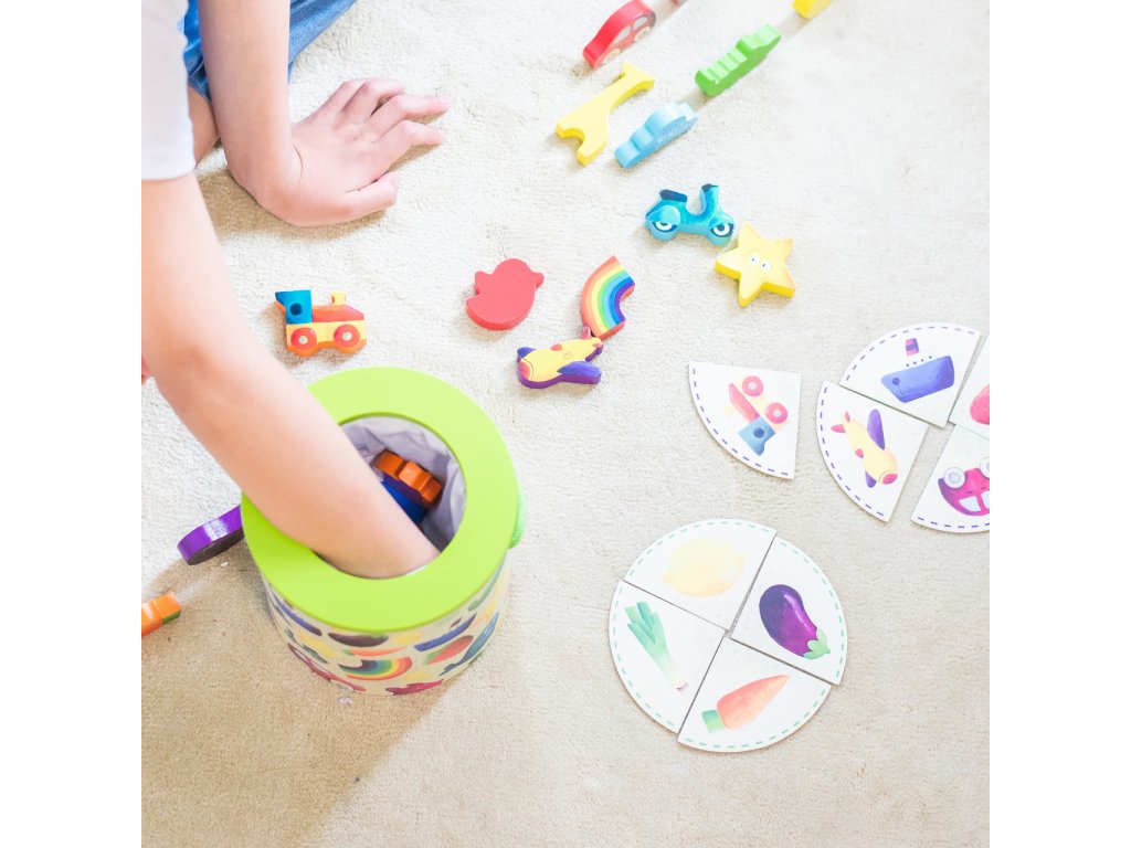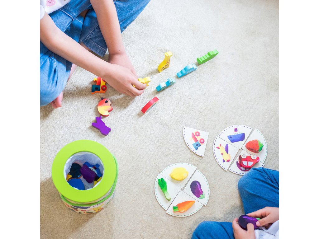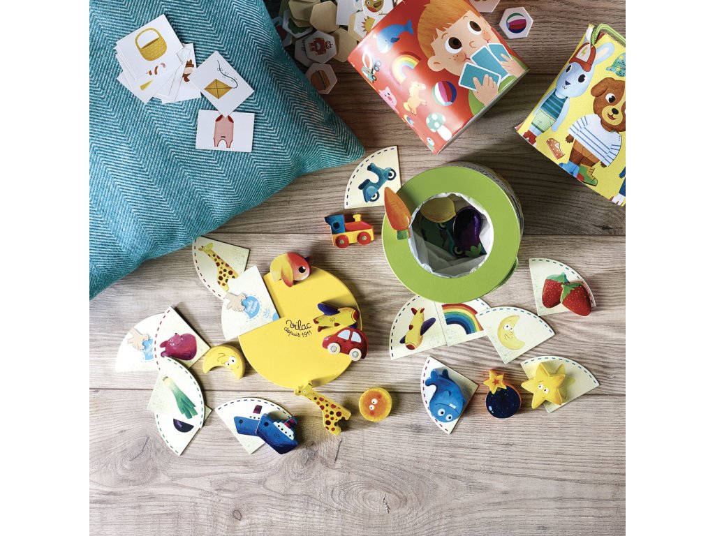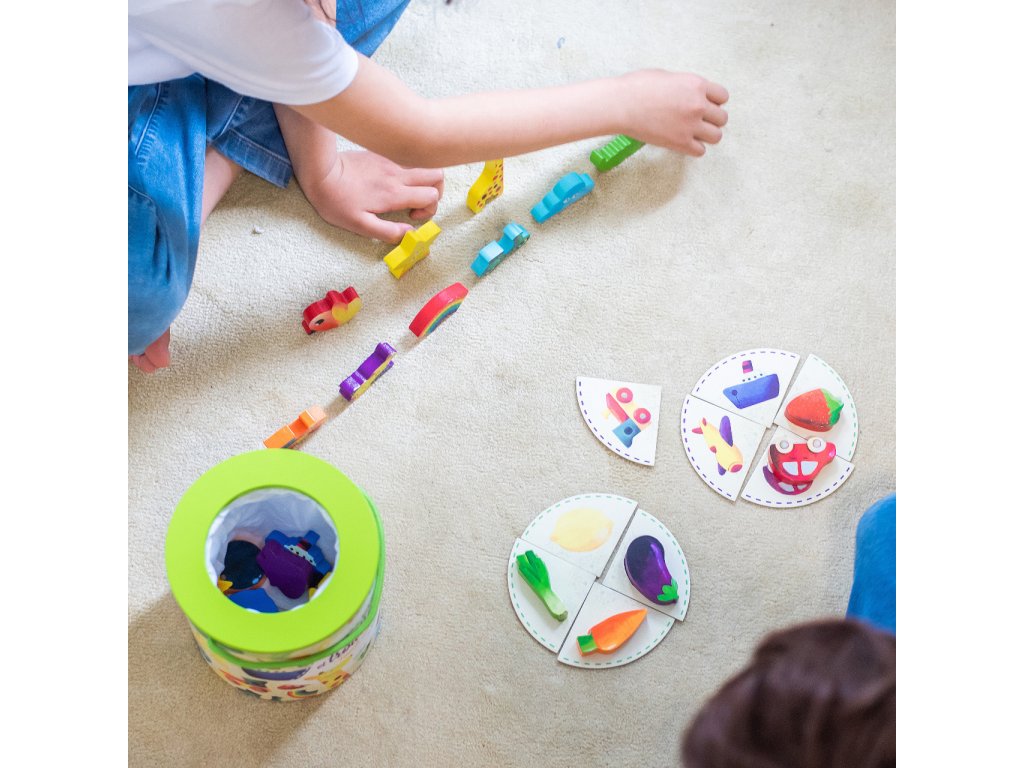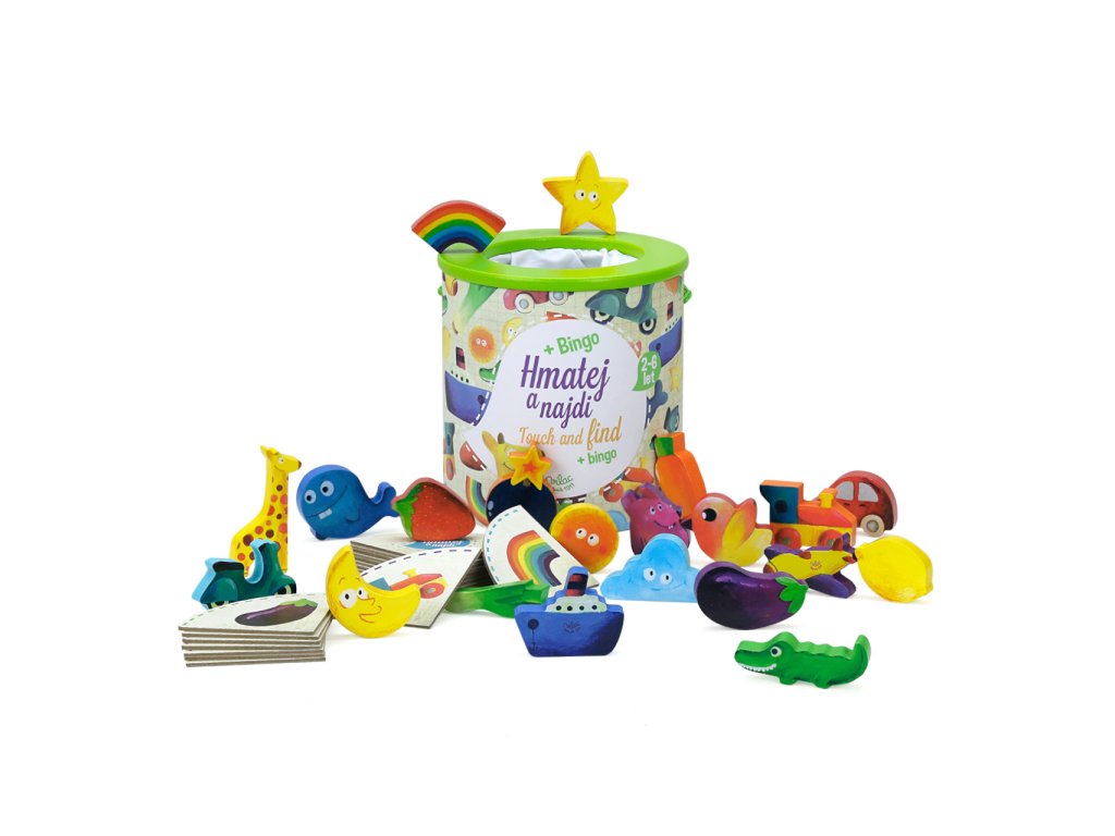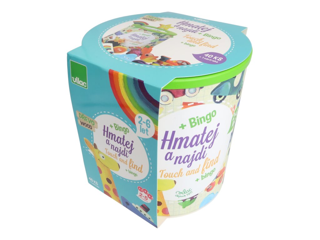 Nepřekonaný bestseller Vilac se originálním způsobem snaží rozvíjet často opomíjený smysl dětí, hmat. Hra je tvořená zejména dřevěnými figurkami ukrytými v kyblíku vybaveném uvnitř jemným látkovým sáčkem. Menší děti mají za úkol po vložení ruky do tuby jen na základě hmatání popsat svými slovy, jaký předmět drží v ruce. Rodiče mohou postup dětem předvést názorným příkladem. Starší děti mohou hrát hru ve formě lota, nebo binga, k těmto hrám jsou v sadě k dispozici obrázkové karty jednotlivých předmětů. Hlavní vlastnosti: 21 herních dílků a 20 obrázkových karetpro 2–5 hráčůrůzné herní variantypraktické balení Návod ke hře: Hmatej a najdi:První hráč si vezme kartu z hromádky. Poté musí sáhnout do sáčku a podle hmatu najít dřevěný dílek, který odpovídá obrázku na kartě. Pokud vybere správný dílek, kartu si ponechá a na řadě je další hráč, který opět začíná tažením karty z hromádky. Pokud ale první hráč vybere nesprávný dílek, musí svou kartu předat dalšímu hráči, který se musí pokusit najít správný dílek. Po každém kole se dílky vrací zpět do sáčku. Když už na hromádce nezbývá žádná karta, určí se vítěz. Vítězí hráč s největším počtem karet. Pozor! Pokud jeden z hráčů náhodou vytáhne dílek ve tvaru bomby, musí všechny své karty vrátit na hromádku! Pravidla můžete upravit dle vlastního uvážení, aby se děti lépe seznámily s hmatáním a hledáním předmětů: 1 – Začněte s malým množstvím dřevěných dílků.2 – Dovolte dětem podívat se do sáčku.3 – Poté hru opět udělejte o něco těžší, nedovolte jim nahlížet do sáčku.4 – Přidejte do sáčku více dílků.5 – Nakonec, až si děti na hru zvyknou, hrajte podle tradičních pravidel. BINGO varianta:Rozložte 4 karty do čtverce a vytvořte jedno, nebo více hracích polí pro každého hráče. Jeden z hráčů, nebo rodič vytáhne dílek ze sáčku a vyvolá ho. Hráč, který má kartu odpovídající tomuto vyvolanému dílku, si jej vezme a položí na svou kartičku. Vítězí hráč, který jako první zaplní své herní pole! Dokumentace: Návod ke hře Hmatej a najdi (CZ)Návod ke hře Hmatej a najdi (SK)Doplňkové parametry