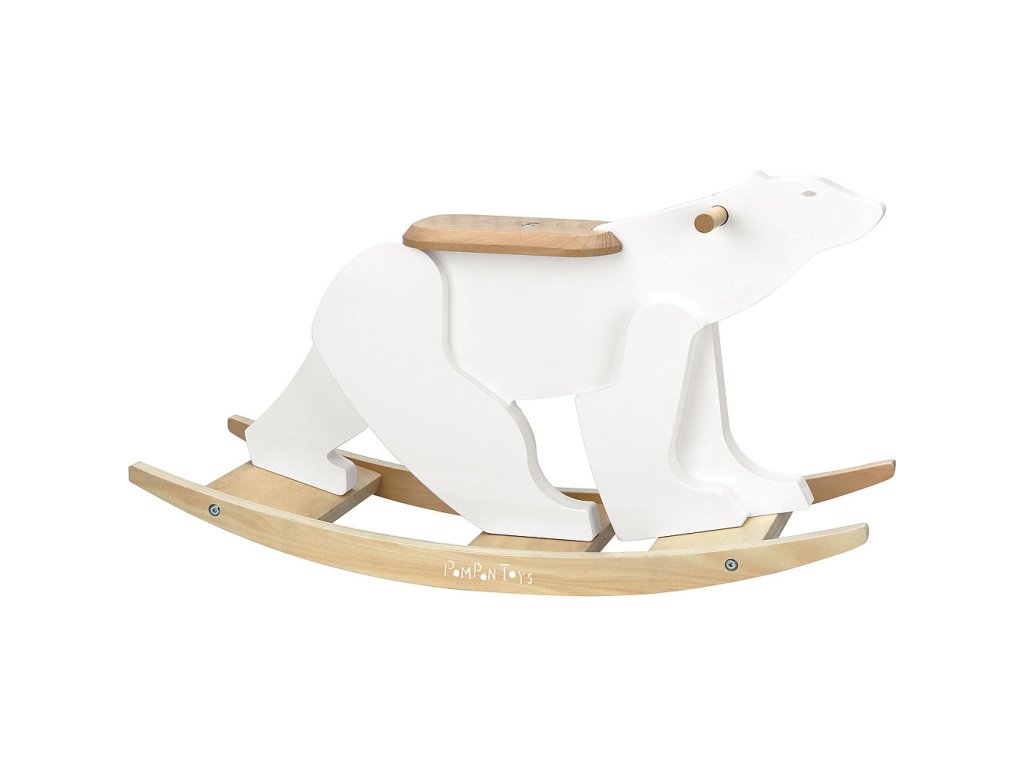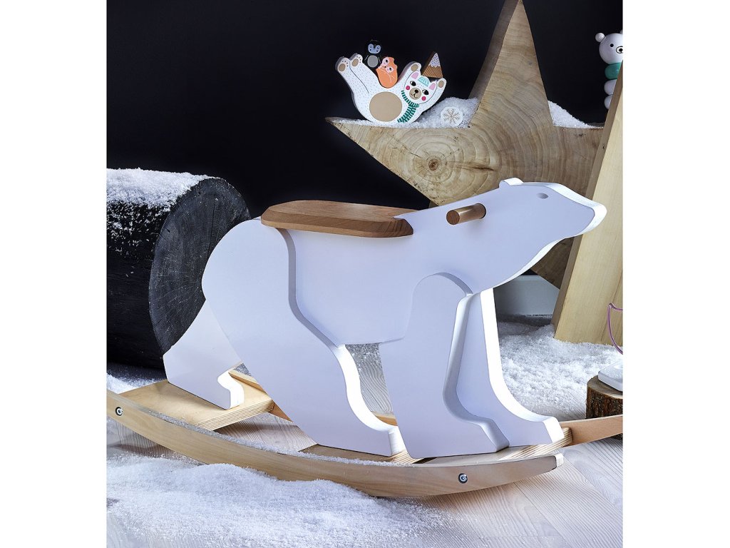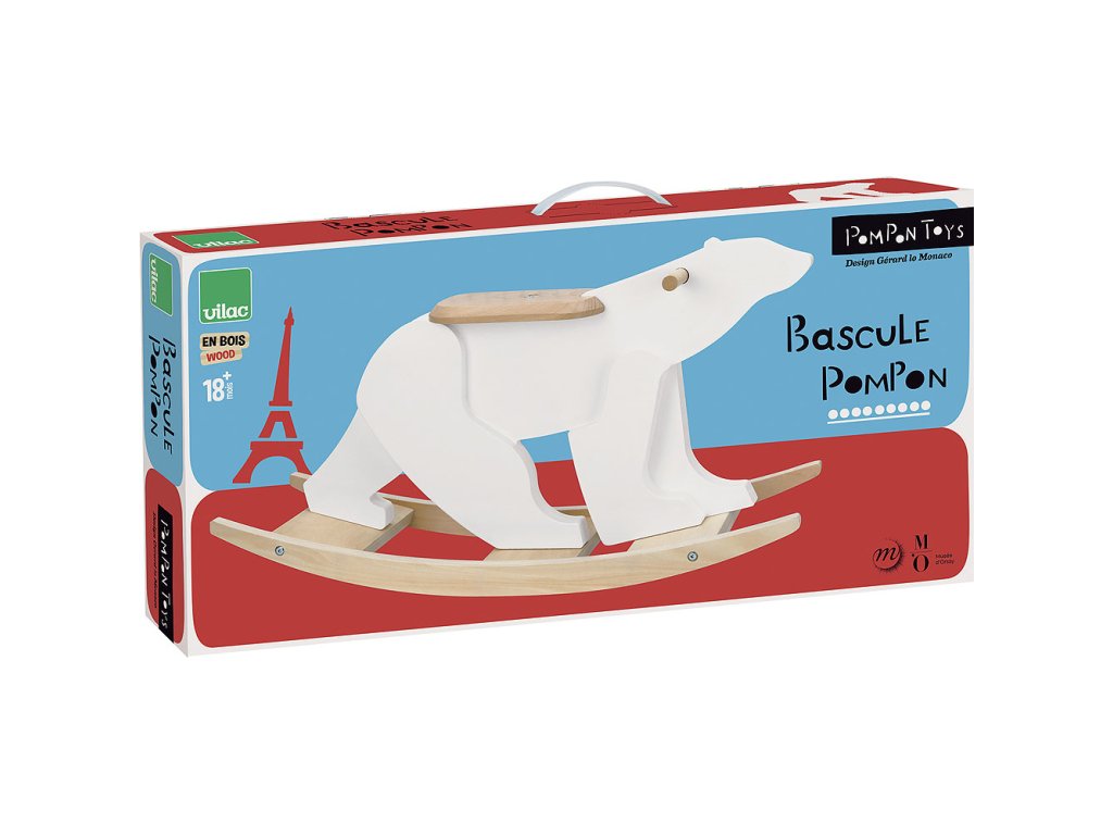 Velmi elegantní houpací lední medvěd, který kopíruje čisté linie soch umělce Pompona. Jste dost stateční, abyste následovali našeho medvěda na jeho poznávací cestě? Užijte si něžnou kombinaci přírodního dřeva pevné konstrukce, sedátka a držátek a bílé barvy ledního medvěda. Je to hračka, která je stejně zábavná jako dekorativní. Hlavní vlastnosti: pevná a stabilní konstrukceherní i dekorativní prvek v každém pokojidesign sochaře Francoise Pompona Se svým malým přenosným pracovním stolem se sochař François Pompon (1855–1933) rád procházel po pařížském Jardin des Plantes (veřejný park a botanická zahrada). Tam mohl pozorovat zvířata a vyrábět jejich modely v malém měřítku. Zpět ve svém ateliéru vyřezával medvědy, pantery, ale také psy, kuřata a králíky, zjednodušováním tvarů nacházel podstatu každého zvířete. Před očima návštěvníků Muzea Orsay, kde je uloženo velké množství těchto soch, tak zvířata ožívají! Jeho sochy reinterpretoval umělec Gérard Lo Monaco a ve spolupráci s RMN (sdružení 34 muzeí) a Muzeem Orsay vzdává poctu Pomponovi výrobou této nádherné řady dřevěných hraček.Doplňkové parametry