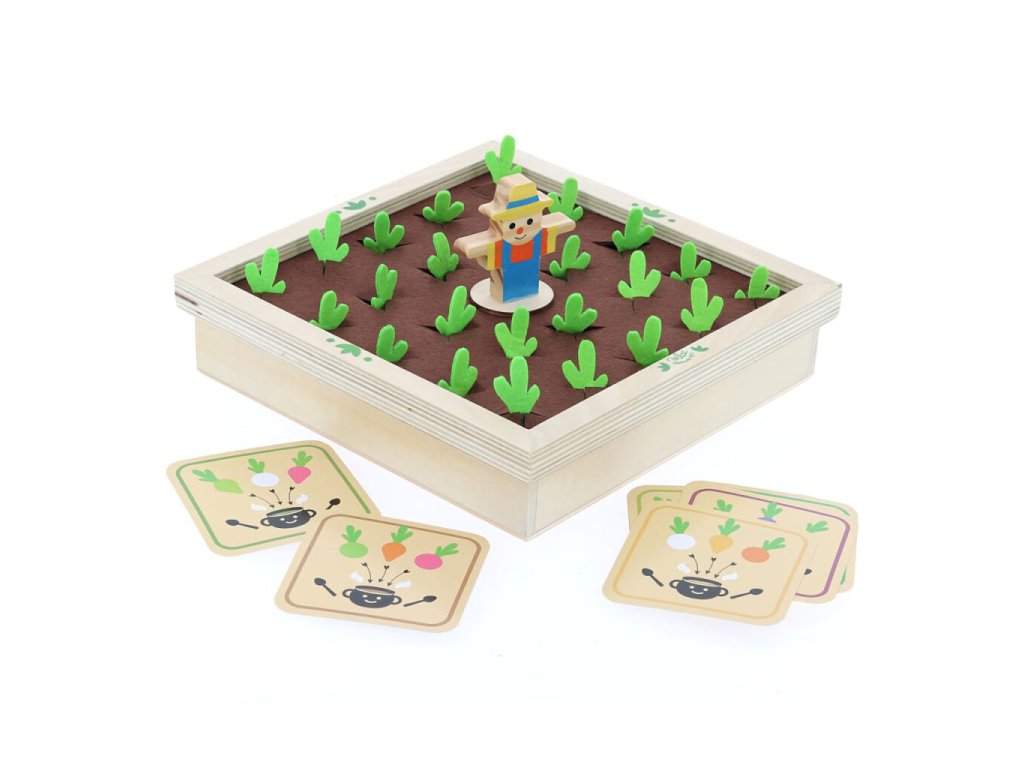 Uvařte si zeleninovou polévku plnou pestrých barev. Ale dejte pozor na bílého králíka, ukradne Vám ingredience! Hru můžete hrát jako jednoduché pexeso i s menšími dětmi, zpestřením jsou pak kartičky s recepty, díky kterým zábava získá další rozměr. Komu se dříve podaří zkompletovat recept a uvařit polévku? Zkusíte zkompletovat více receptů, nebo hru okořenit i bodovým ohodnocením jednotlivých druhů zeleniny? Součásti hry kombinují silnou překližku, masivní dřevo či plsť a jsou poutavě, tematicky dekorované. Hra má 2 varianty, Pexeso a Uvařme polévku. Hlavní vlastnosti: pro 2–6 hráčůhrací plocha, 24 herních dílků a 7 kartiček s recepty2 herní varianty, vhodné i pro menší dětijedinečné a atraktivní zpracování Dokumentace: Návod ke hře Sklízení zahrádky (CZ)Návod ke hře Sklízení zahrádky (SK)Doplňkové parametry