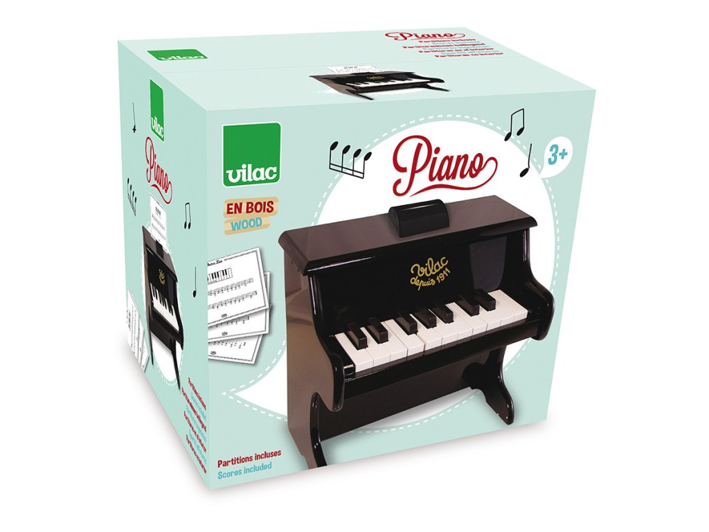Krásný dřevěný klavír s 18 klávesami. Součástí balení je deset stránek not, děti se tak mohou naučit hrát některé z melodií. Nejedná se o hudební nástroj, ale hračku. Hlavní vlastnosti: ideální pro první hranípodporuje hudební talentDoplňkové parametry